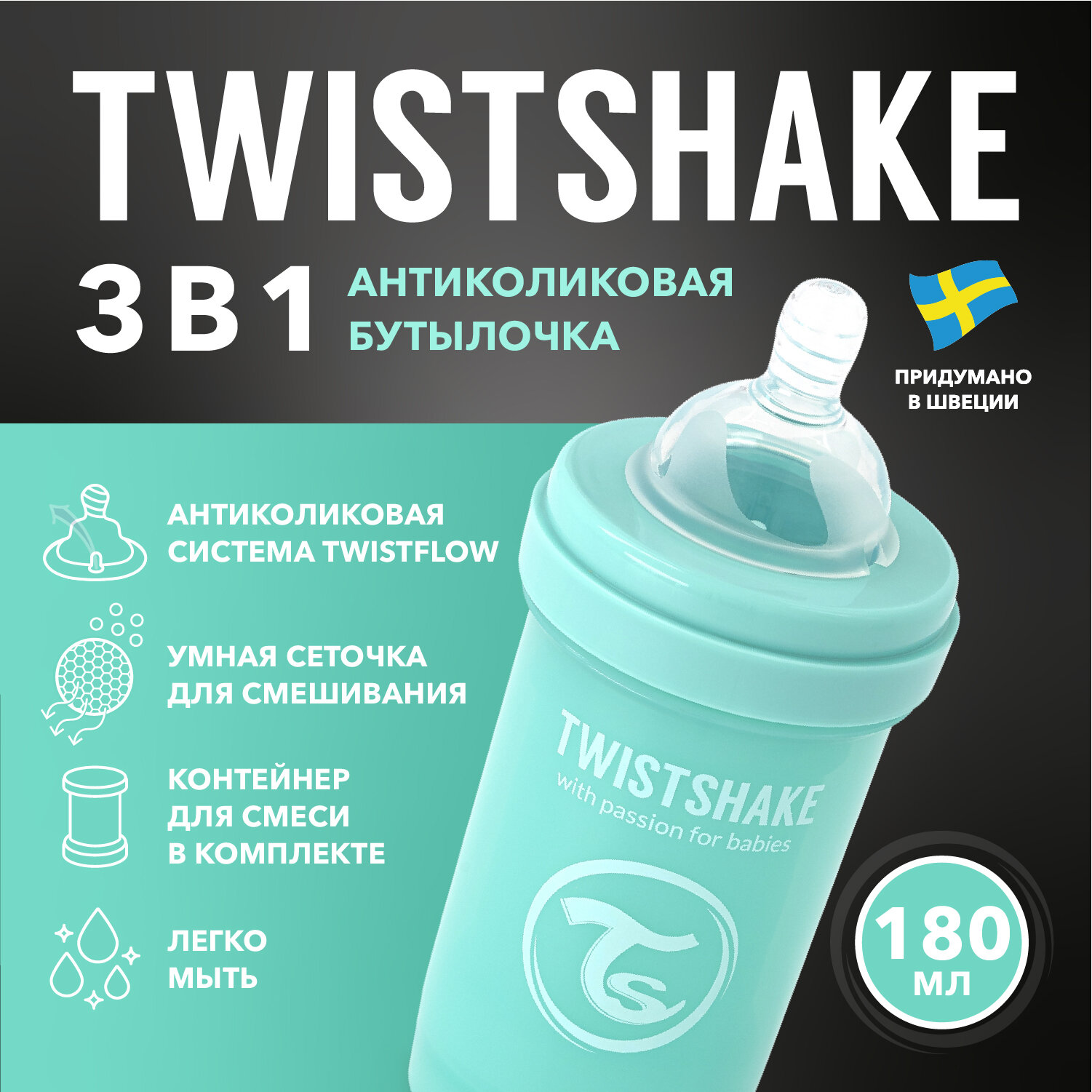 СохранитьДетская антиколиковая бутылочка Twistshake для кормления, 180 мл, от 0 мес. Бирюзовый интересное: