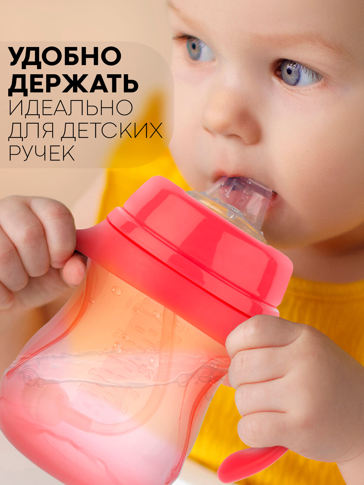 Детская бутылочка для кормления с ручками и мягким носиком, 180мл, бренд Картофан, розовая интересное: