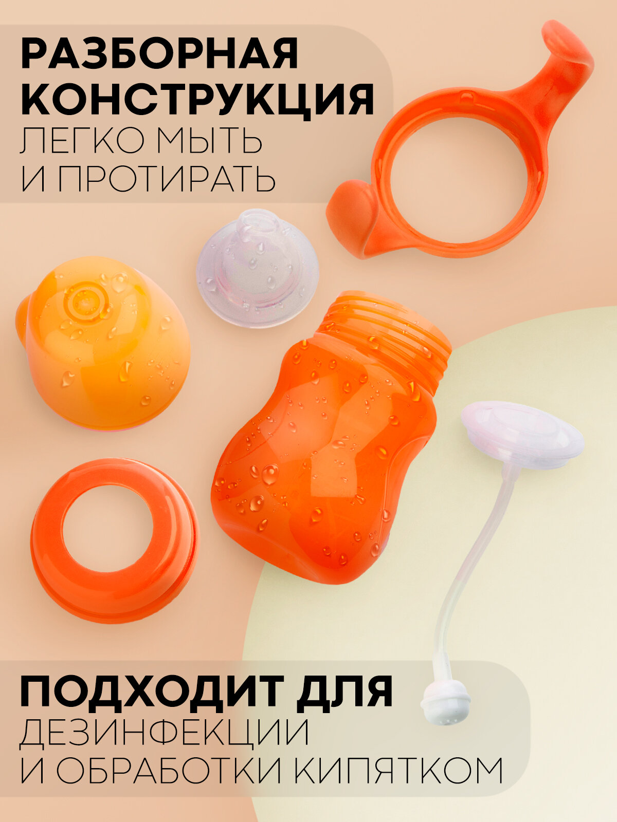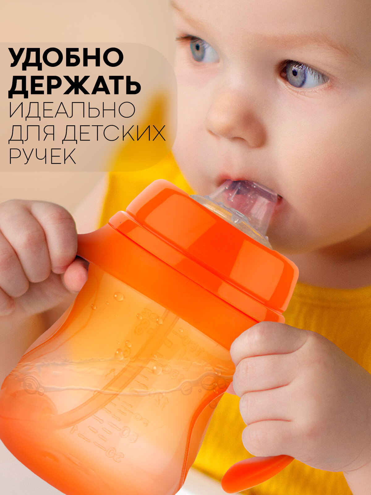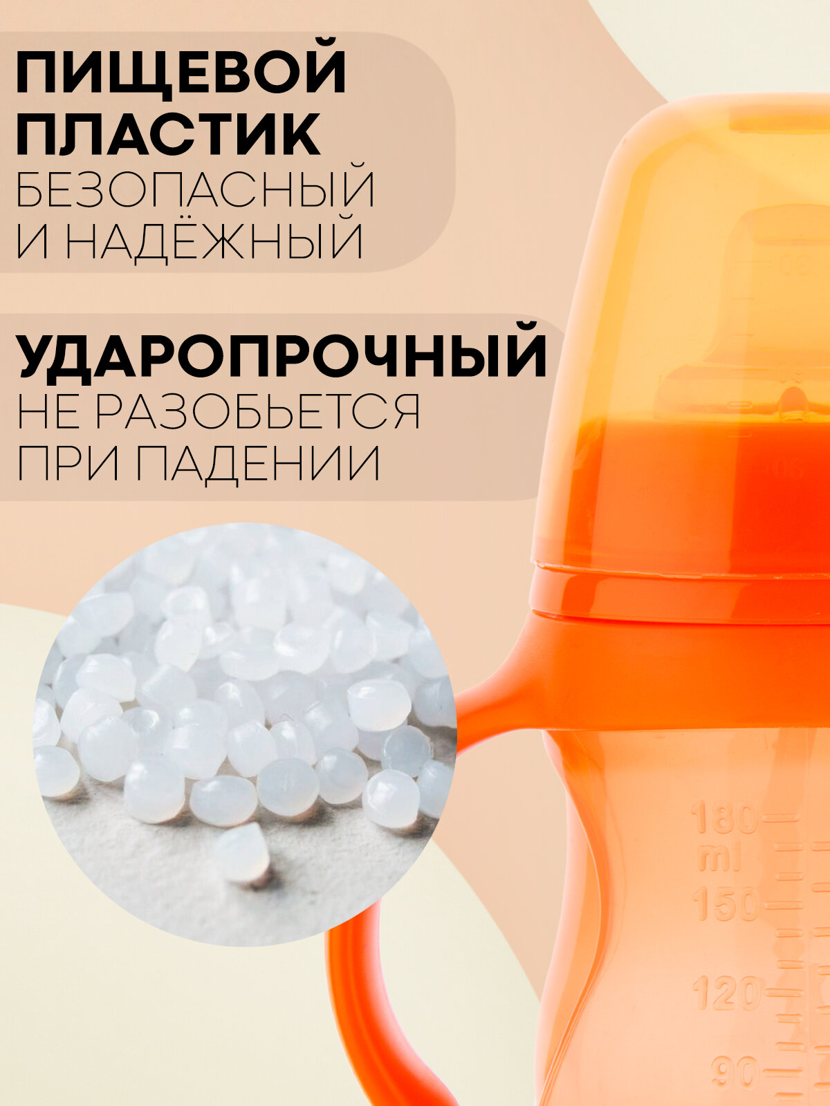 Детская бутылочка для кормления с ручками и мягким носиком, 180мл, бренд Картофан, оранжевая интересное: