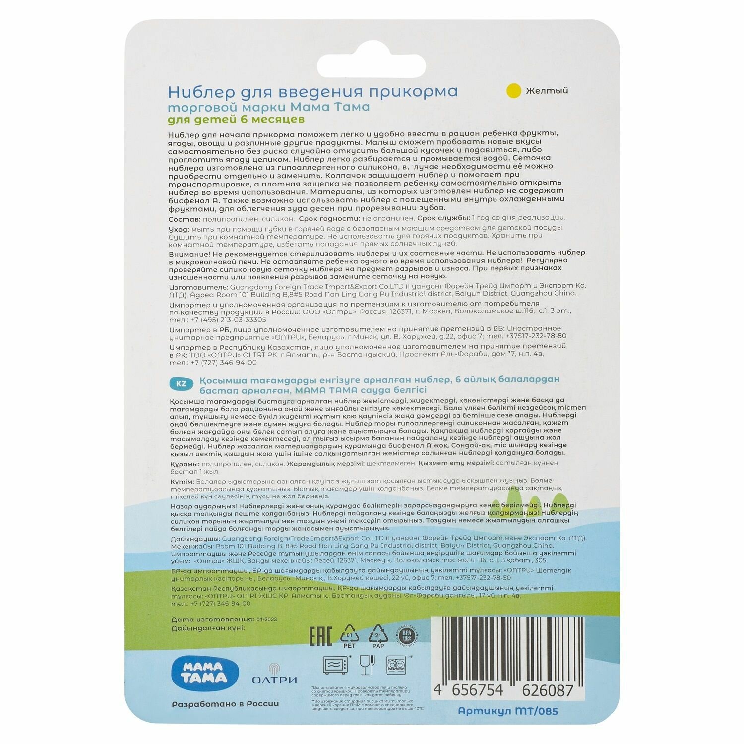 Ниблер для прикорма для детей с сеточкой 6+ мама тама желтый интересное: