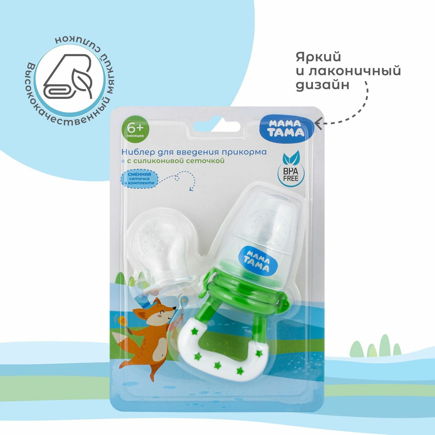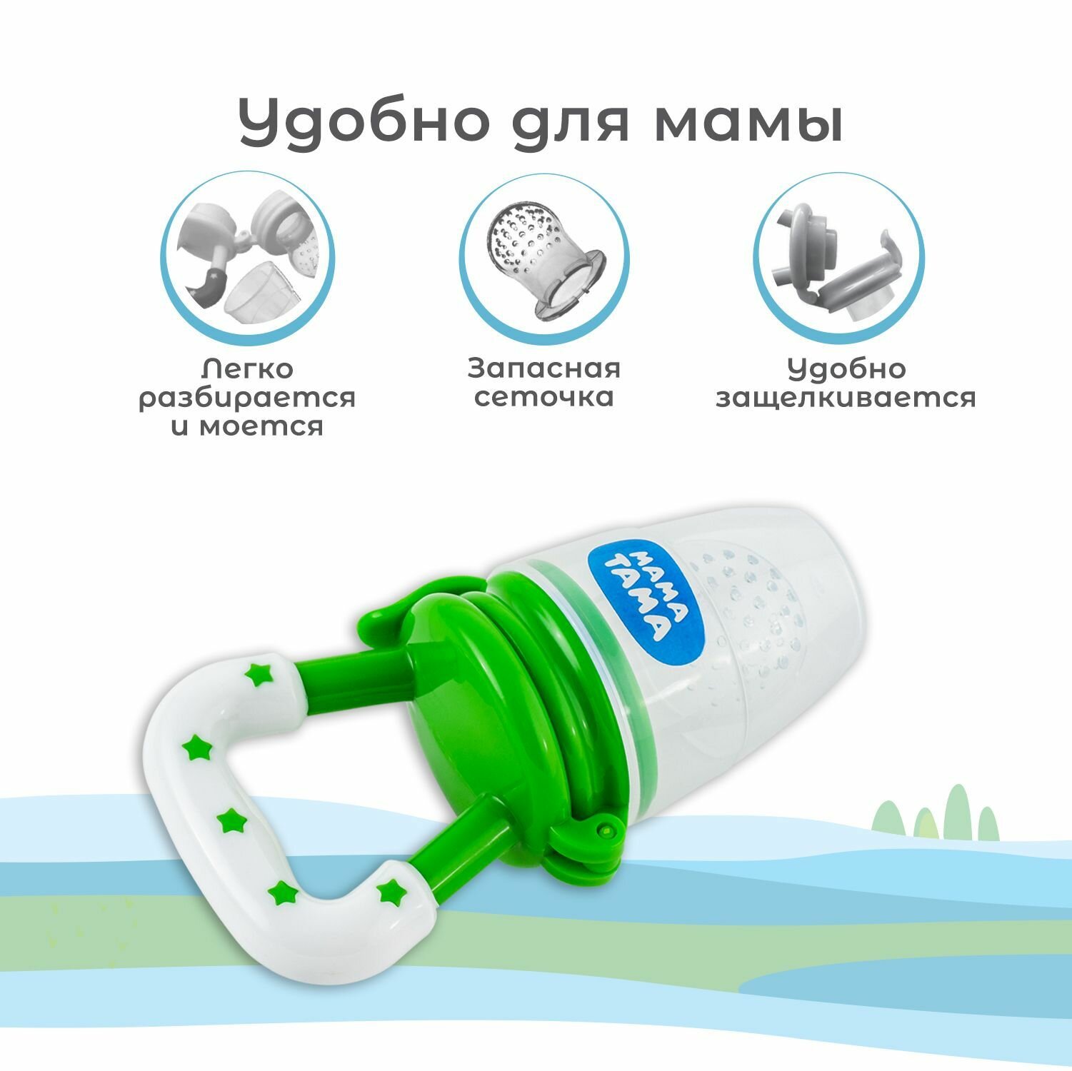 Ниблер Мама Тама с 2 силиконовыми сеточками, зеленый, 6 мес+