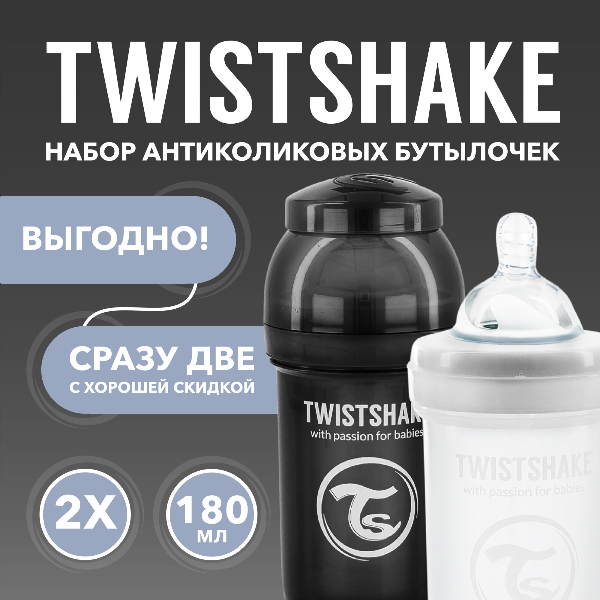 Набор антиколиковых бутылочек Twistshake. 180 мл. 0+ мес. Чёрно-белый. интересное:
