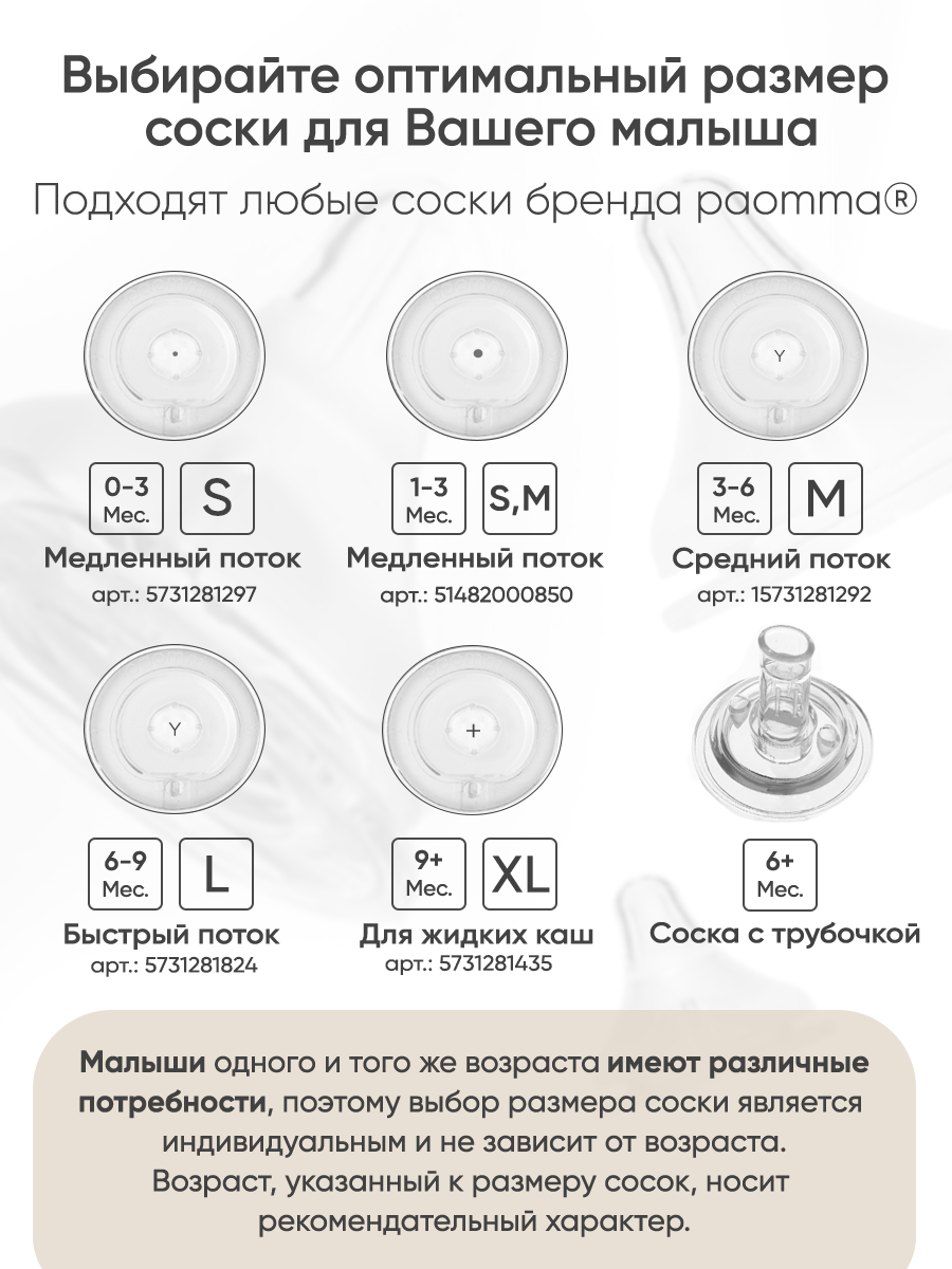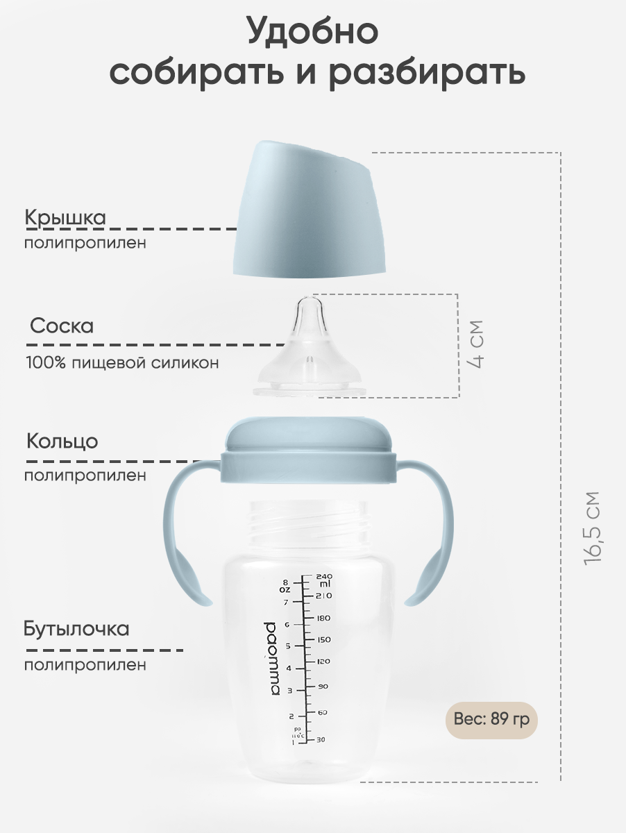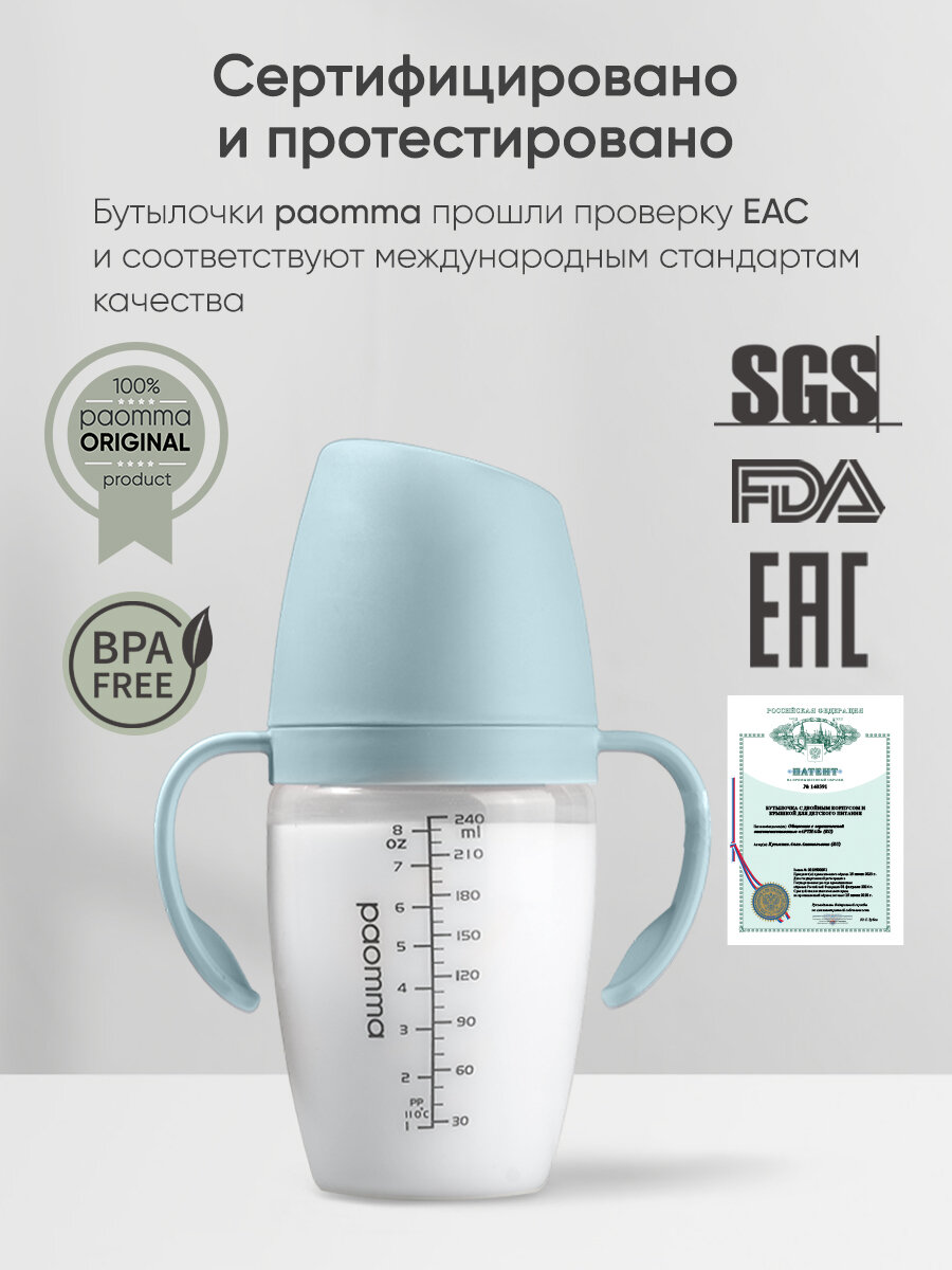 Paomma / Детская бутылочка для кормления с ручками, антиколиковая с соской L(быстрый поток), 240 мл интересное: