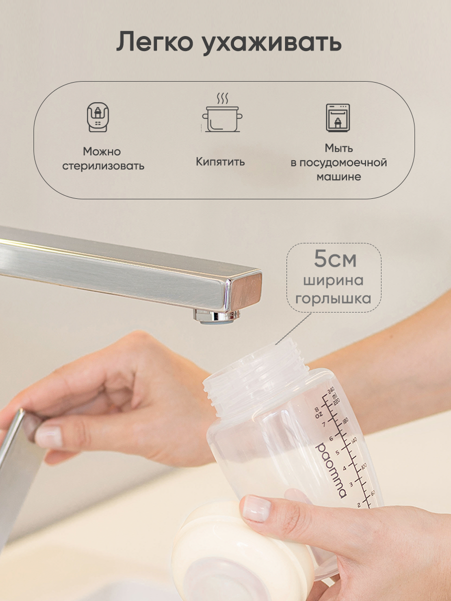 Paomma / Детская бутылочка для кормления для новорожденных с ручками с соской mom effect 0+ 240 мл