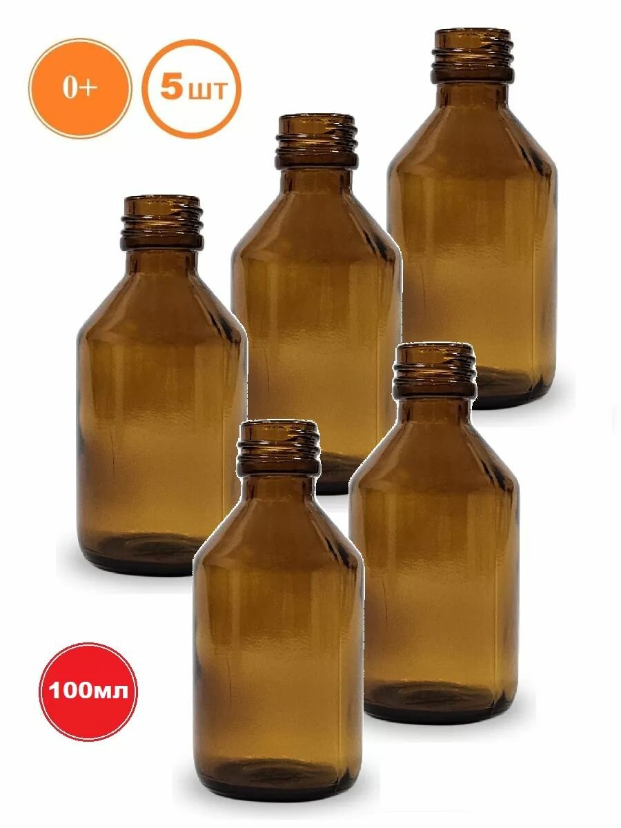 Бутылочка стеклянная 100 мл. детская узкое горло, 5 шт. интересное: