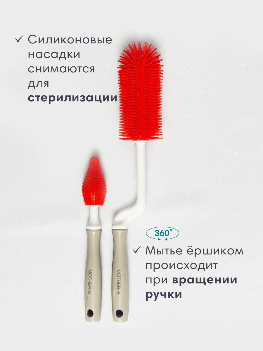 Набор ершиков для бутылочек и сосок Mother-K, силикон, красный интересное: