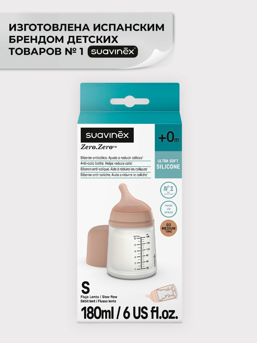 SUAVINEX Zero.Zero Бутылочка для новорожденных 0+ ( медленный поток) 180 мл, антиколиковая бутылочка с соской интересное: