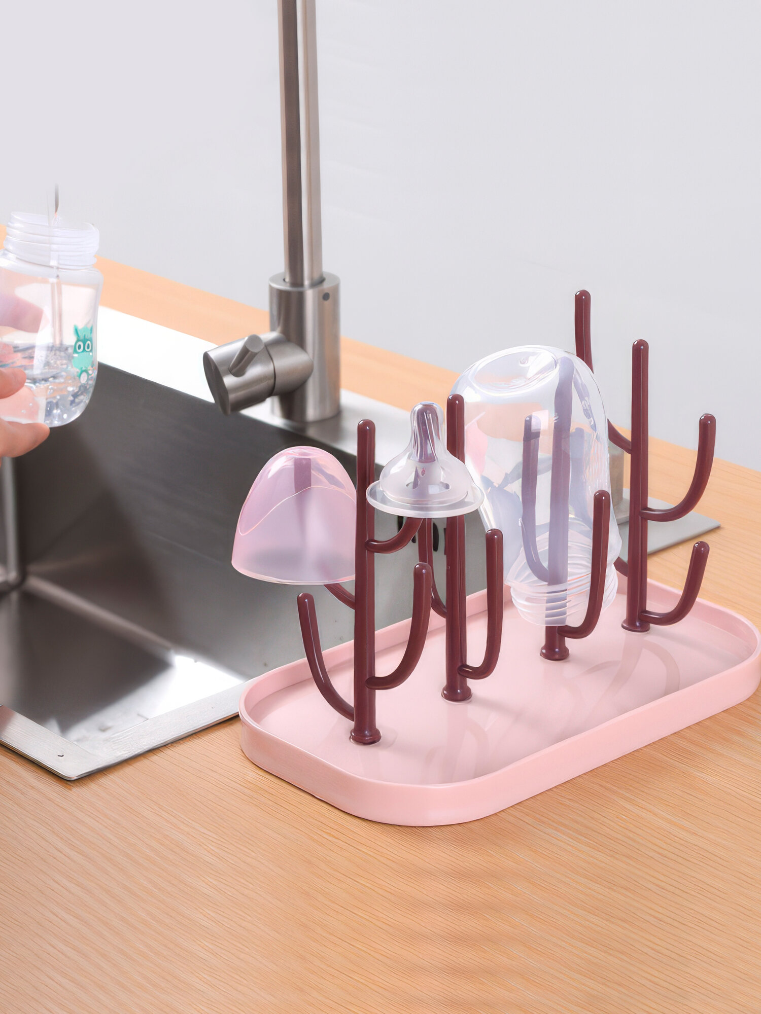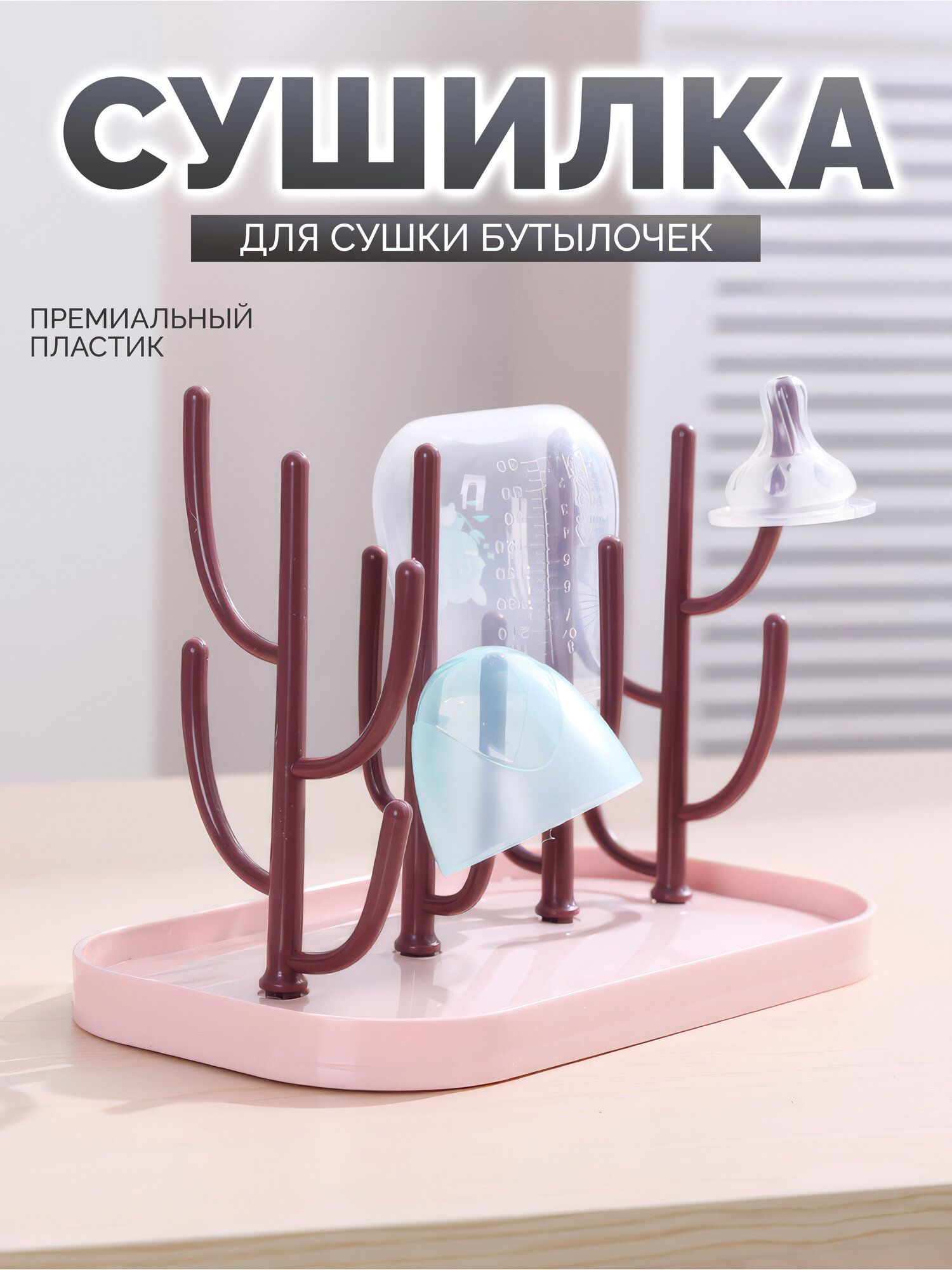 Подставка для сушки IBRICO, для бутылочек, сосок, пластик, розовая интересное: