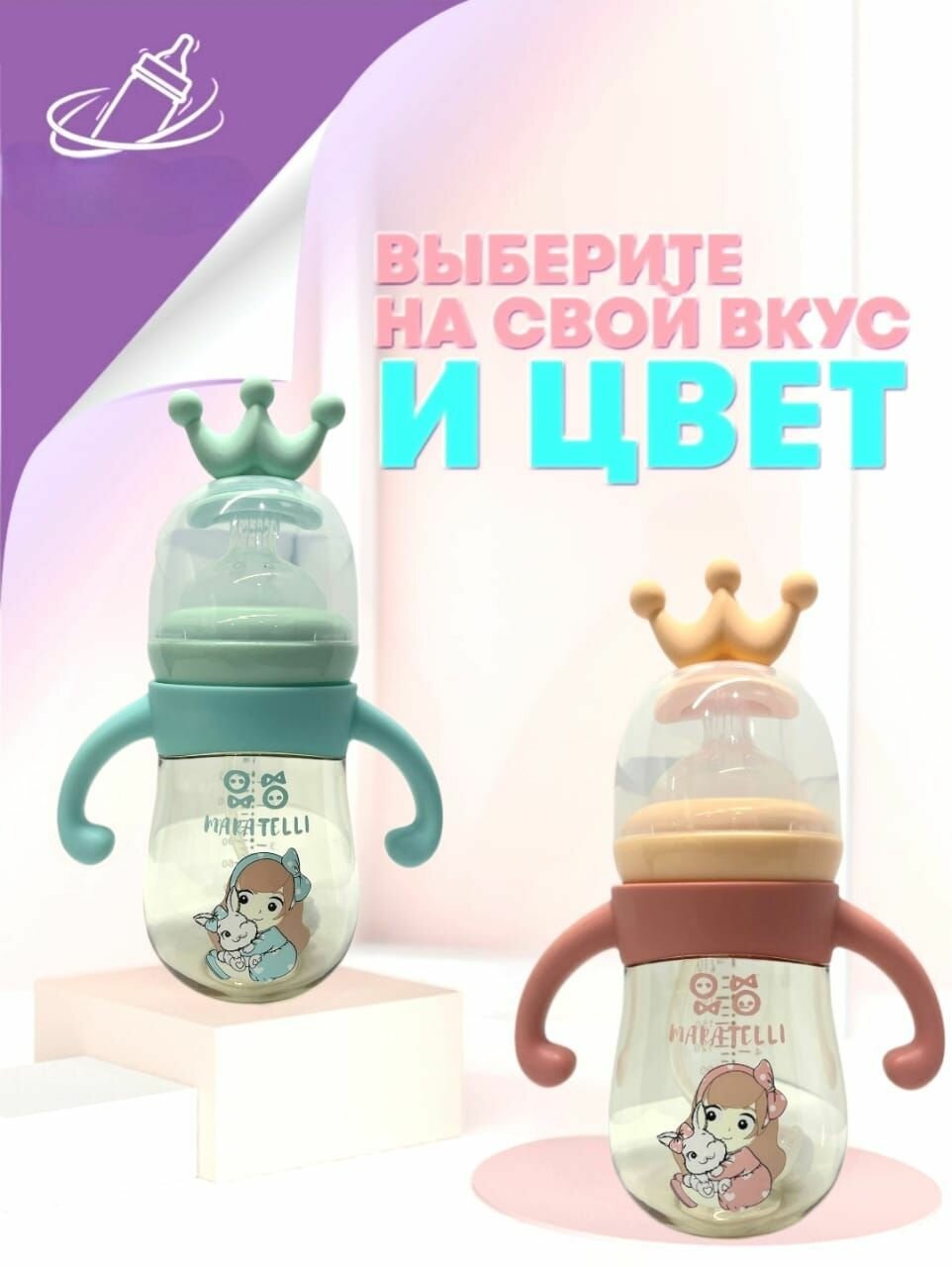 Крошка Я Бутылочка для кормления цветная с ручками, 150 мл с рождения
