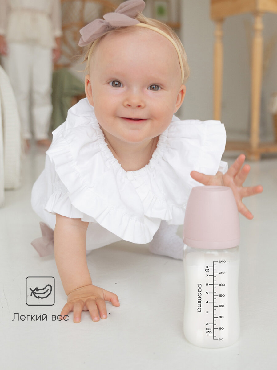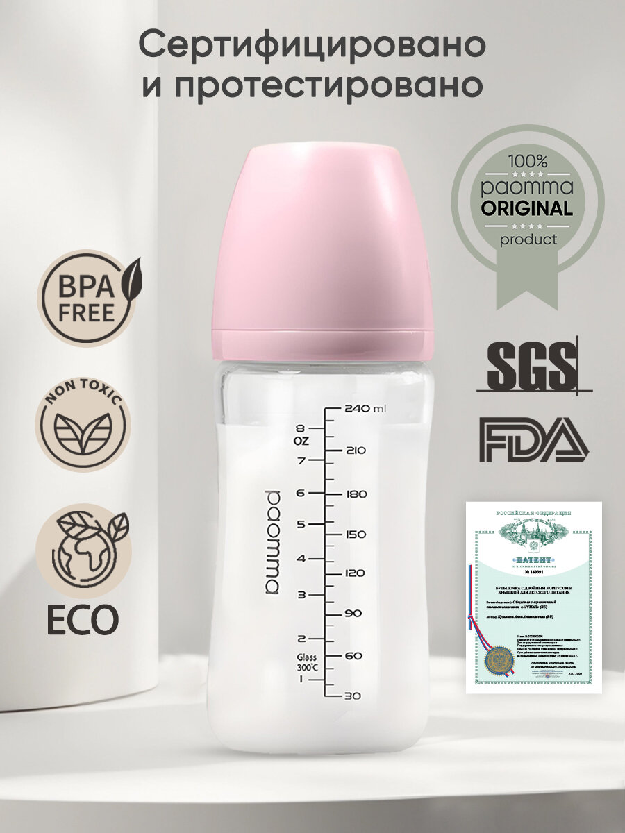 Paomma / Стеклянная бутылочка для кормления, с соской среднего потока, от 6 мес интересное: