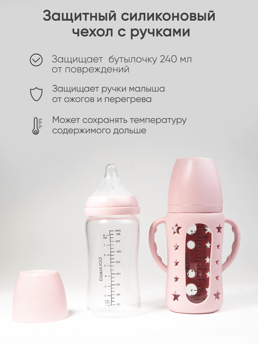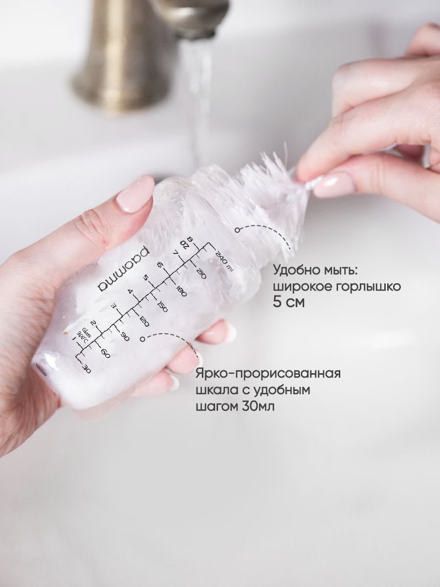 Paomma / Стеклянная бутылочка для кормления 240 мл, от 6 мес