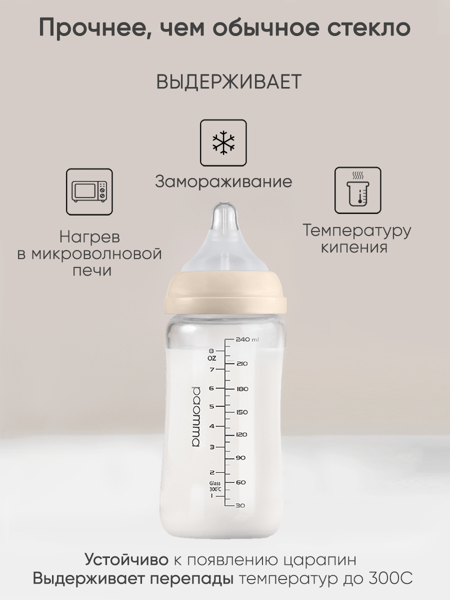 Paomma / Стеклянная бутылочка для кормления 240 мл, от 6 мес интересное: