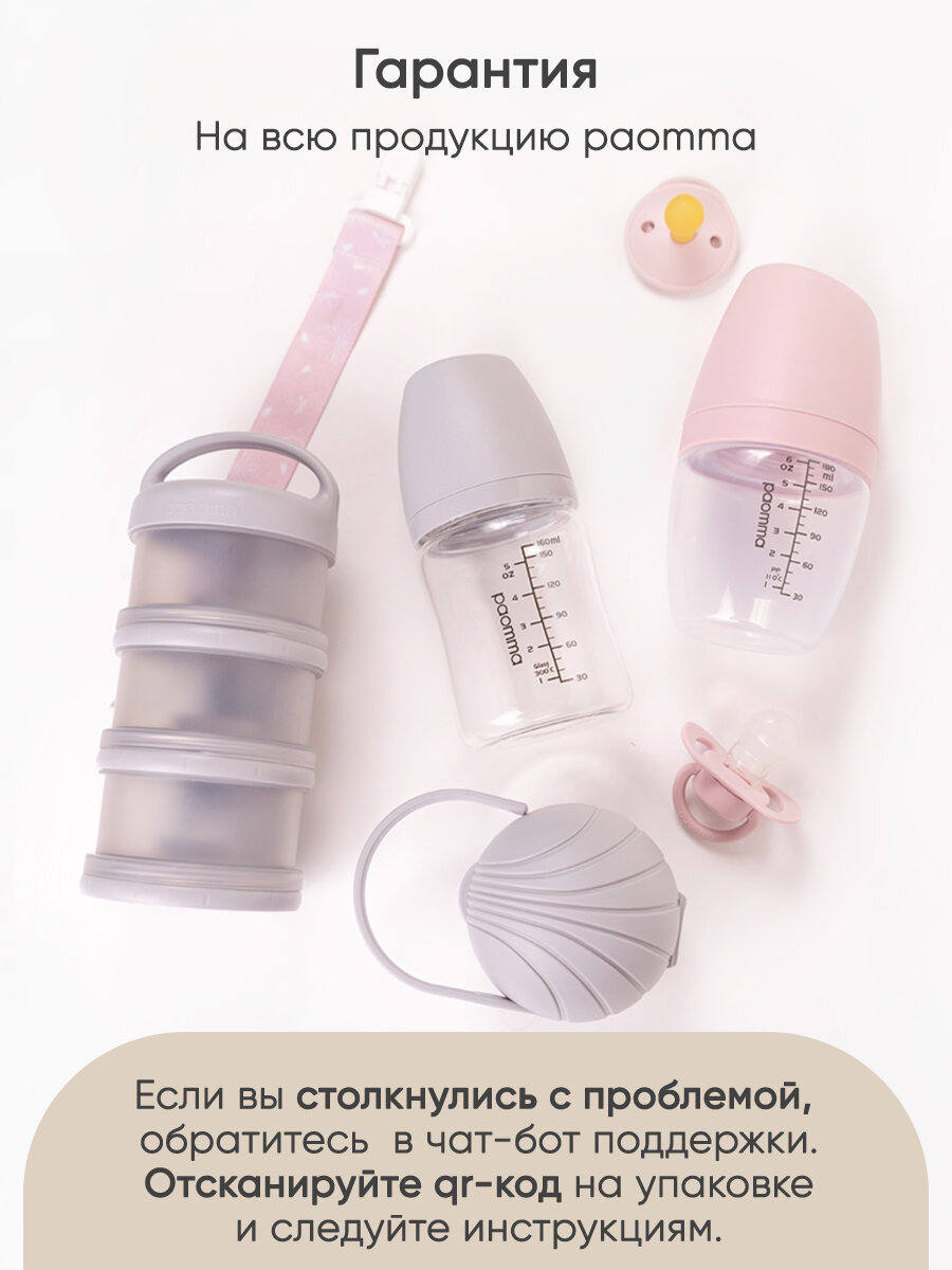 Paomma / Стеклянная бутылочка для кормления, с соской среднего потока, от 6 мес