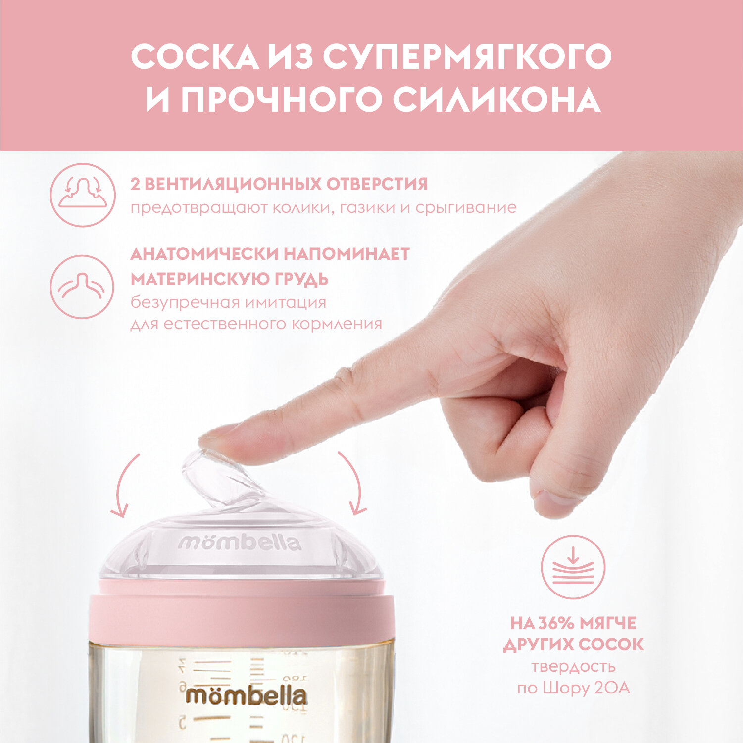 Антиколиковая бутылочка для кормления Mombella, широкая, 120 мл, пластиковая, 0+ мес.