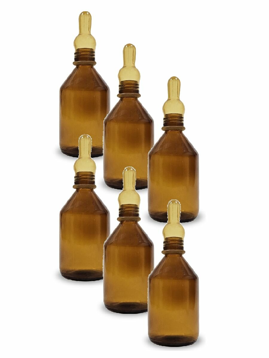 Купить Бутылочка стеклянная 50 мл. с соской латекс детская узкое горло, набор 6 шт.