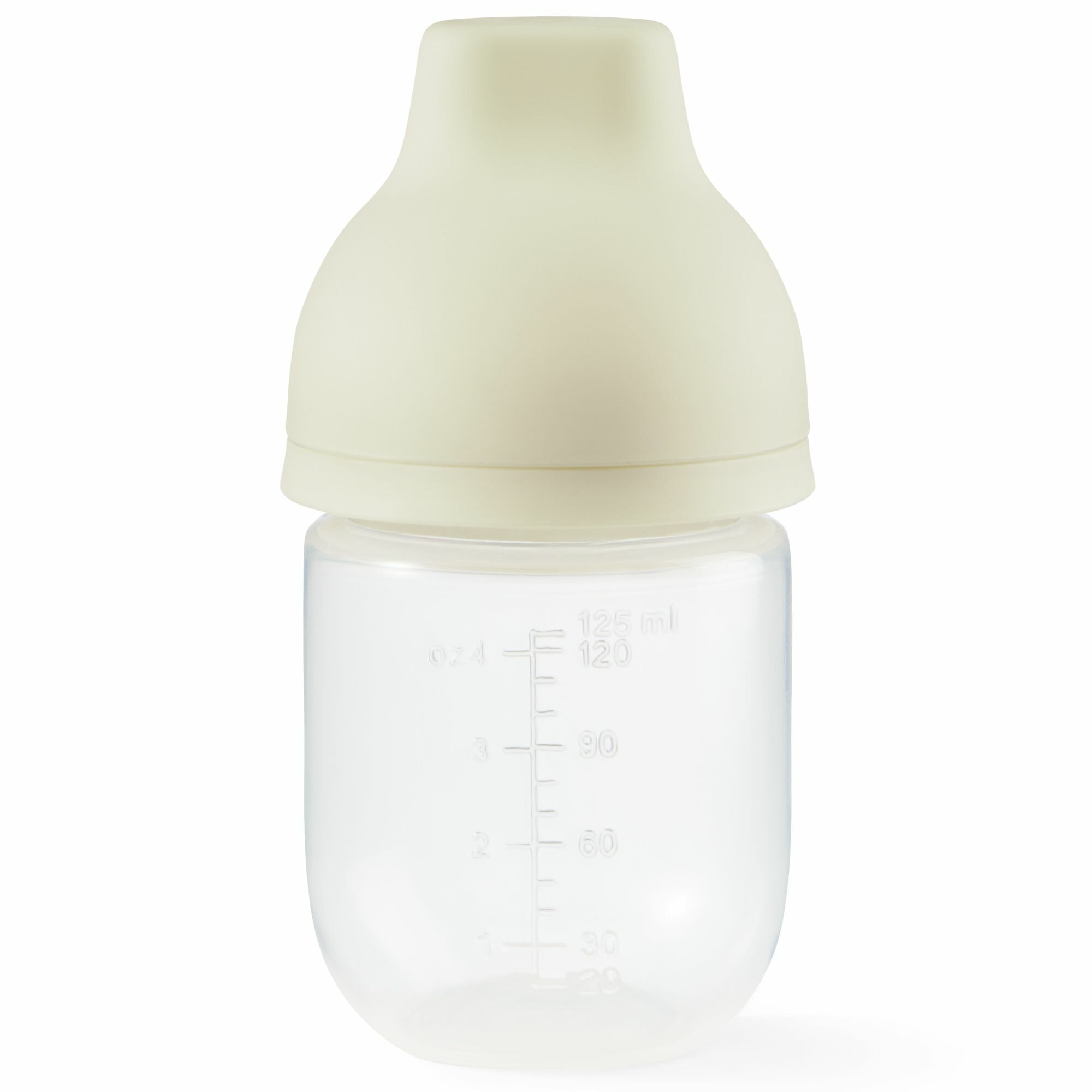 Купить 10030, Бутылочка для кормления Happy Baby, для новорожденных, с крышкой и силиконовой соской, 125 мл, кремовая