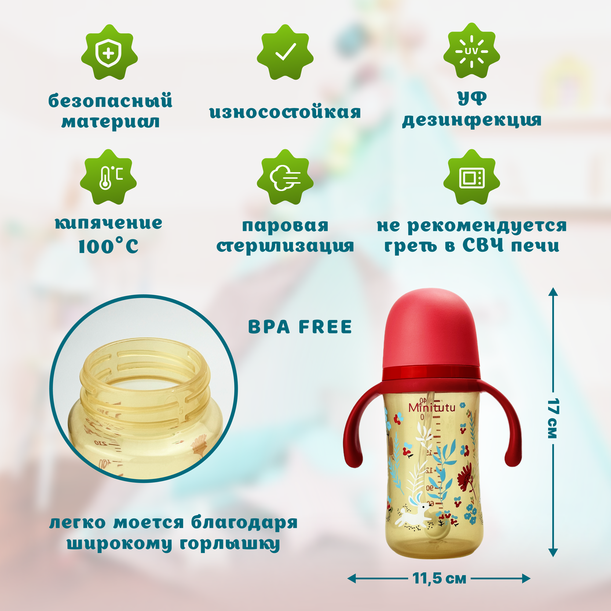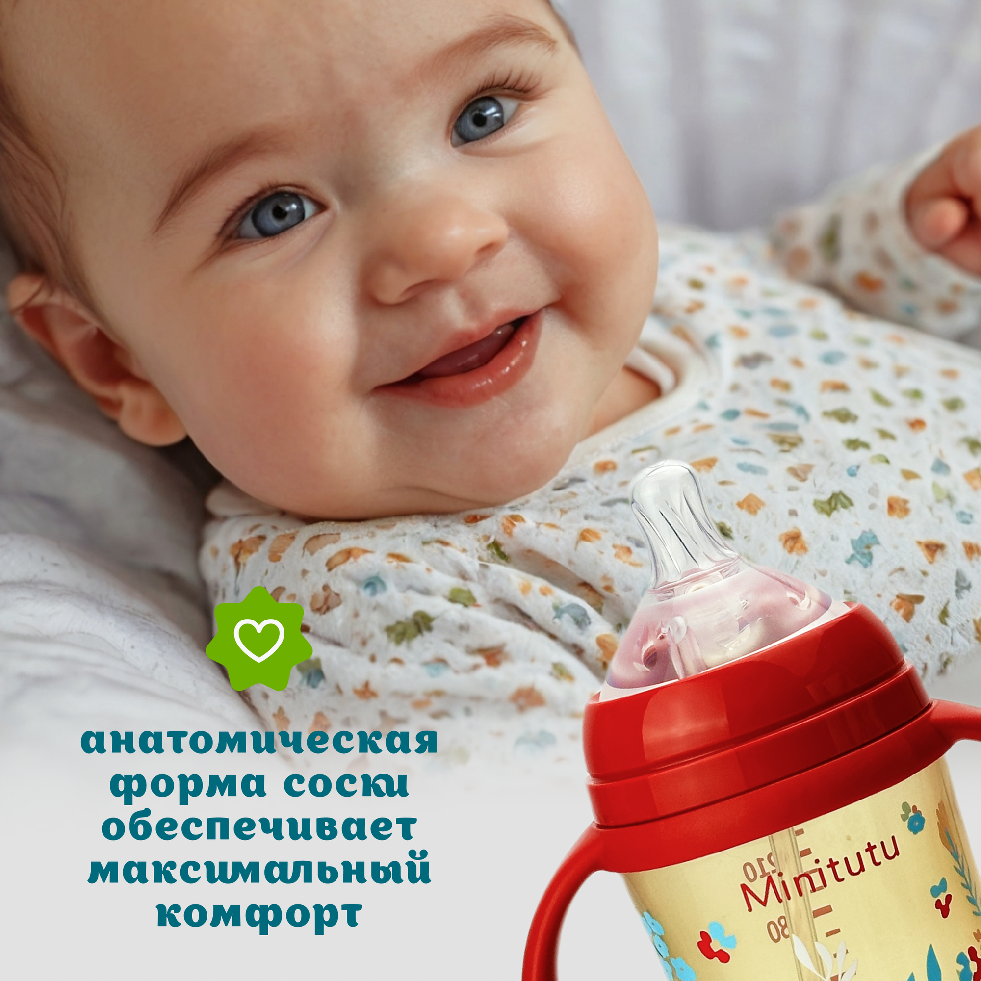 Курносики Бутылочка полипропиленовая с ручками и двумя силиконовыми сосками, 250 мл, с 6 месяцев