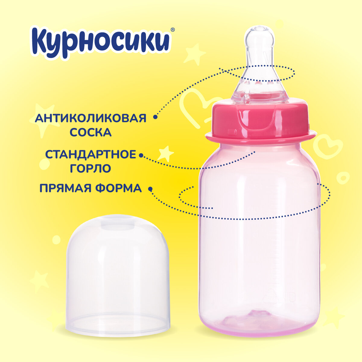 Антиколиковая бутылочка для кормления новорожденного Курносики с силиконовой соской розовая, 125 мл, 0+ мес. интересное: