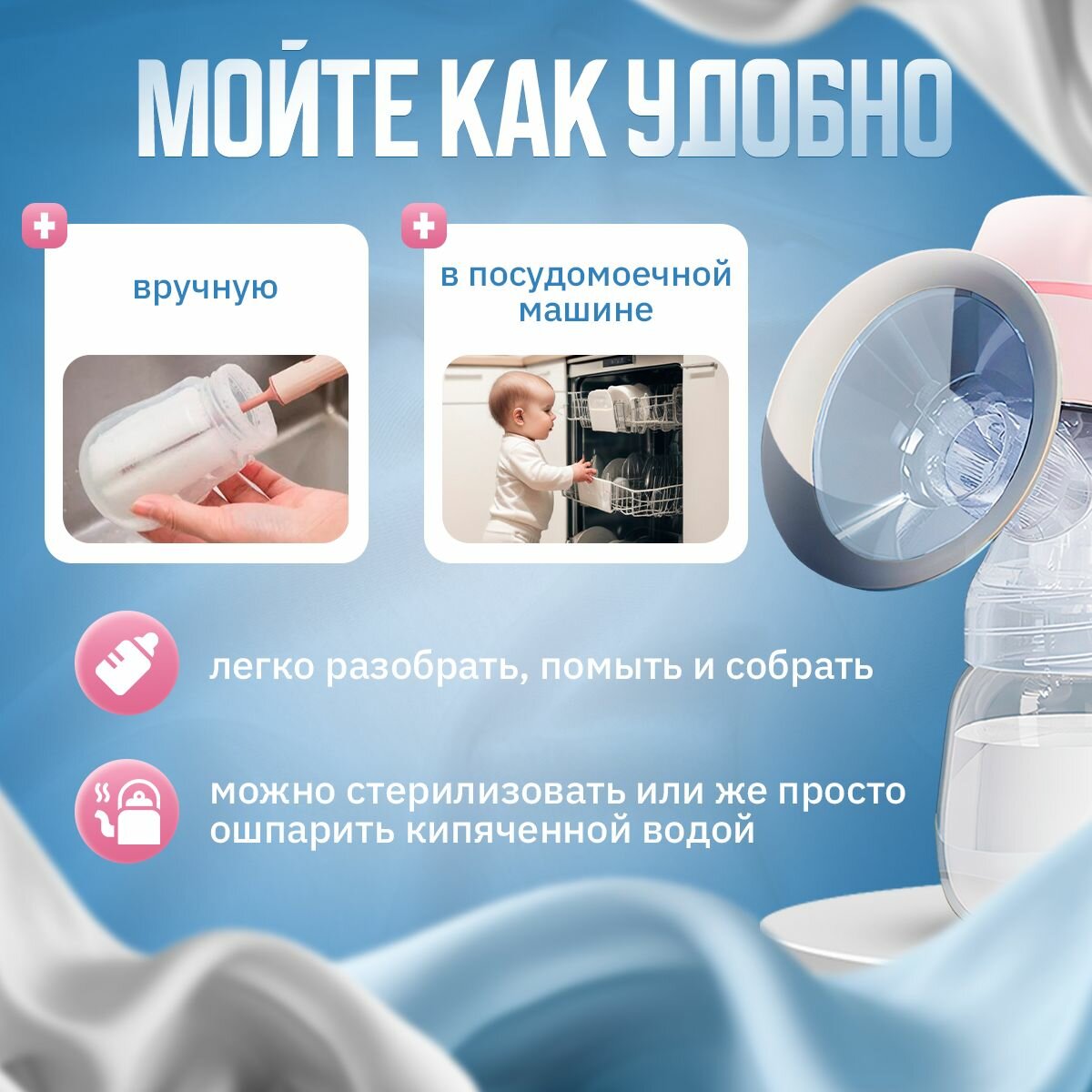 Молокоотсос электрический, беспроводной / розовый, с бутылочкой для кормления интересное: