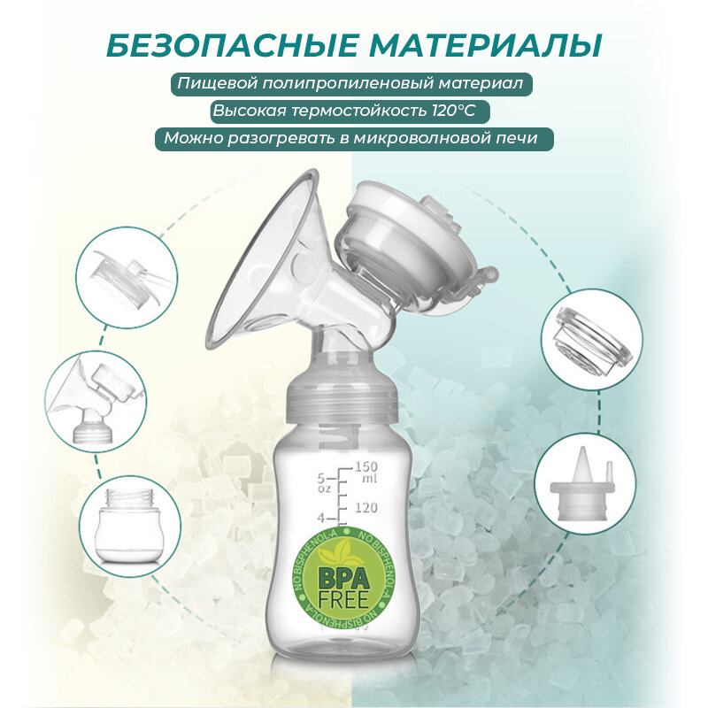 Молокоотсос ручной механический с бутылочкой для кормления ШГ и соской, 150 мл., цвет белый