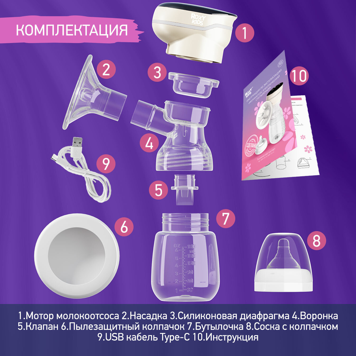 Молокоотсос электрический ROXY-KIDS с бутылочкой цвет бежевый интересное: