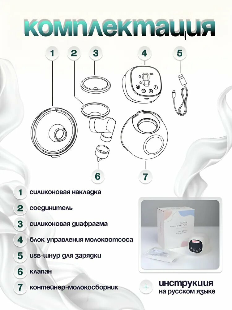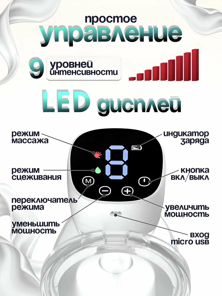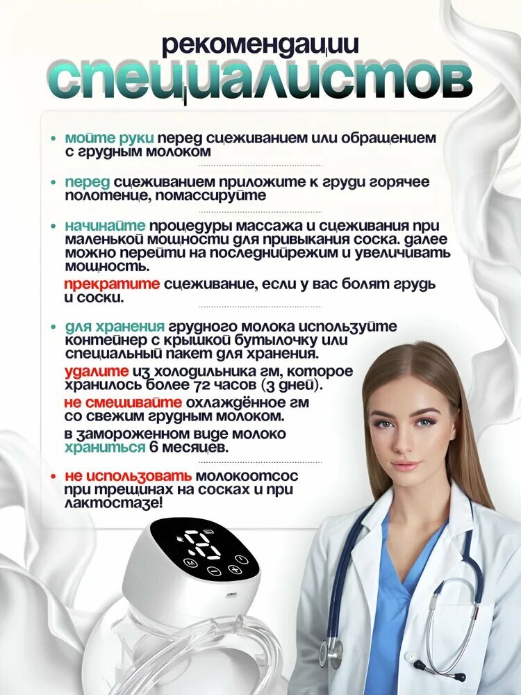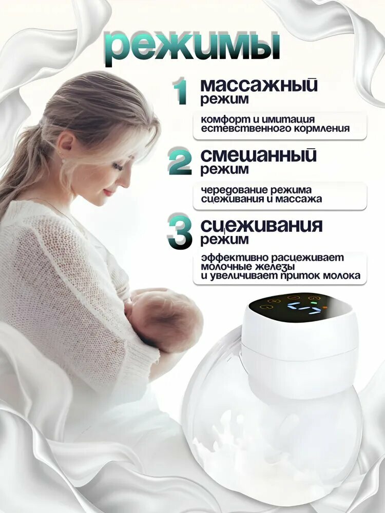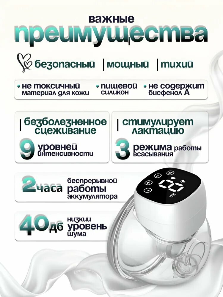 Baby Электрический молокоотсос, беспроводной, дисплей, с воронкой, белый интересное:
