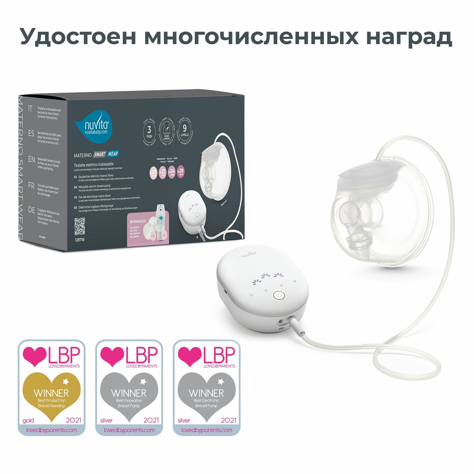 Молокоотсос электрический портативный трехфазный Nuvita Materno Smart Wear (1287W) беспроводной с молокосборником 240 мл интересное: