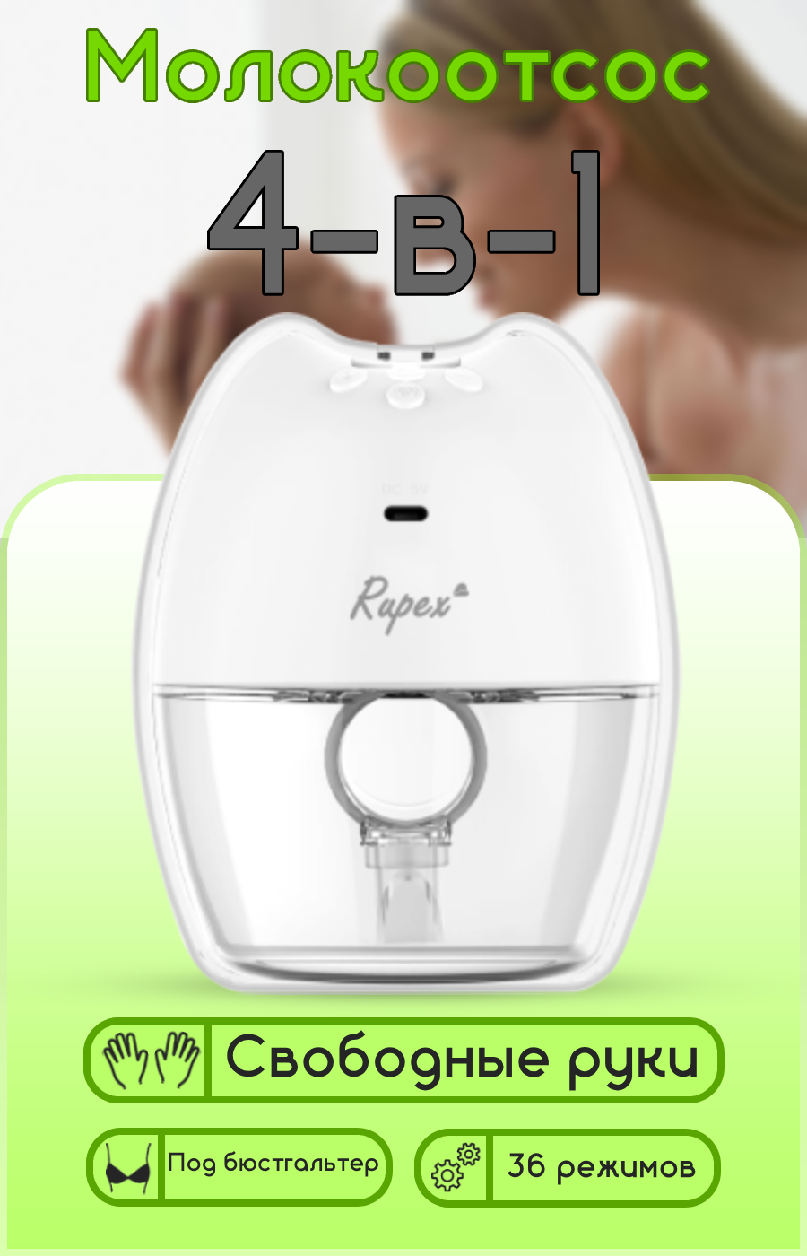 Электронный трехфазный молокоотсос Rupex RBX8038 с функцией 2-в-1 для использования под бюстгальтер интересное:
