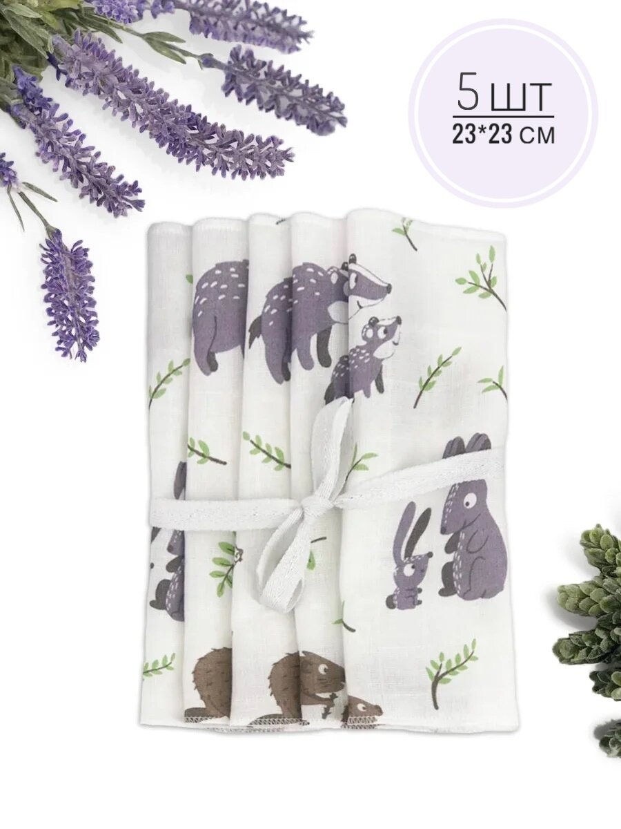 Салфетки детские / Муслиновые салфетки многоразовые / 5 шт / Для кормления / 23х23 см интересное: