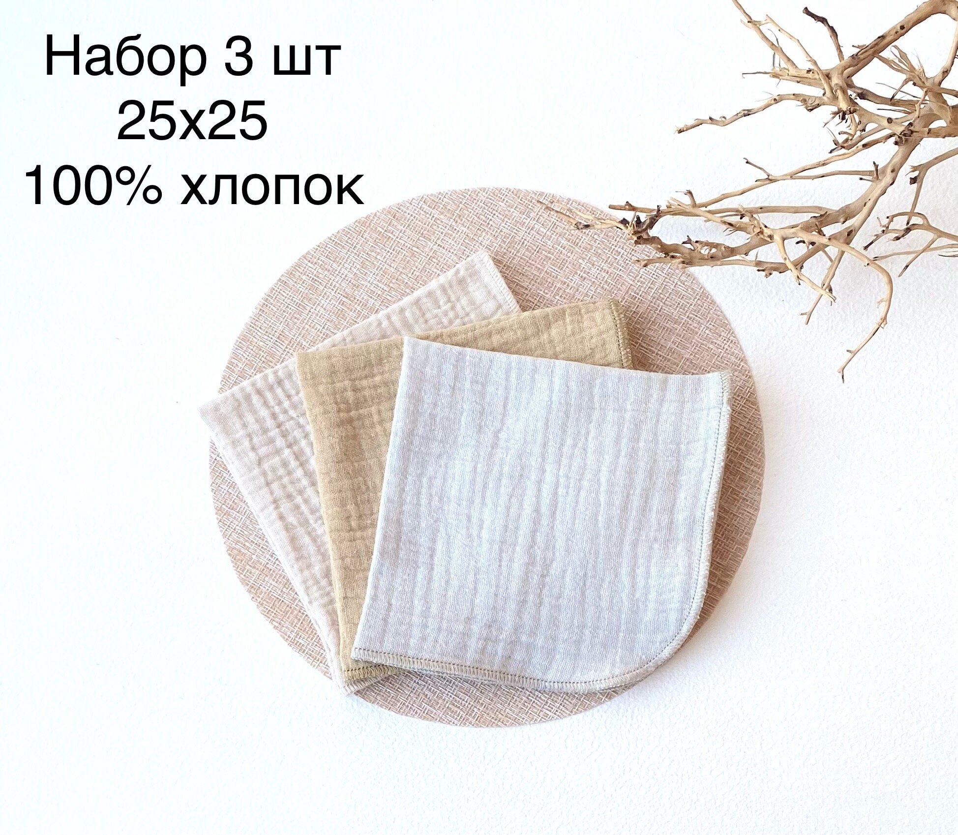 Набор платочков 3 шт Состав:100% хлопок, Цвет: пудровый, телесный, белый интересное: