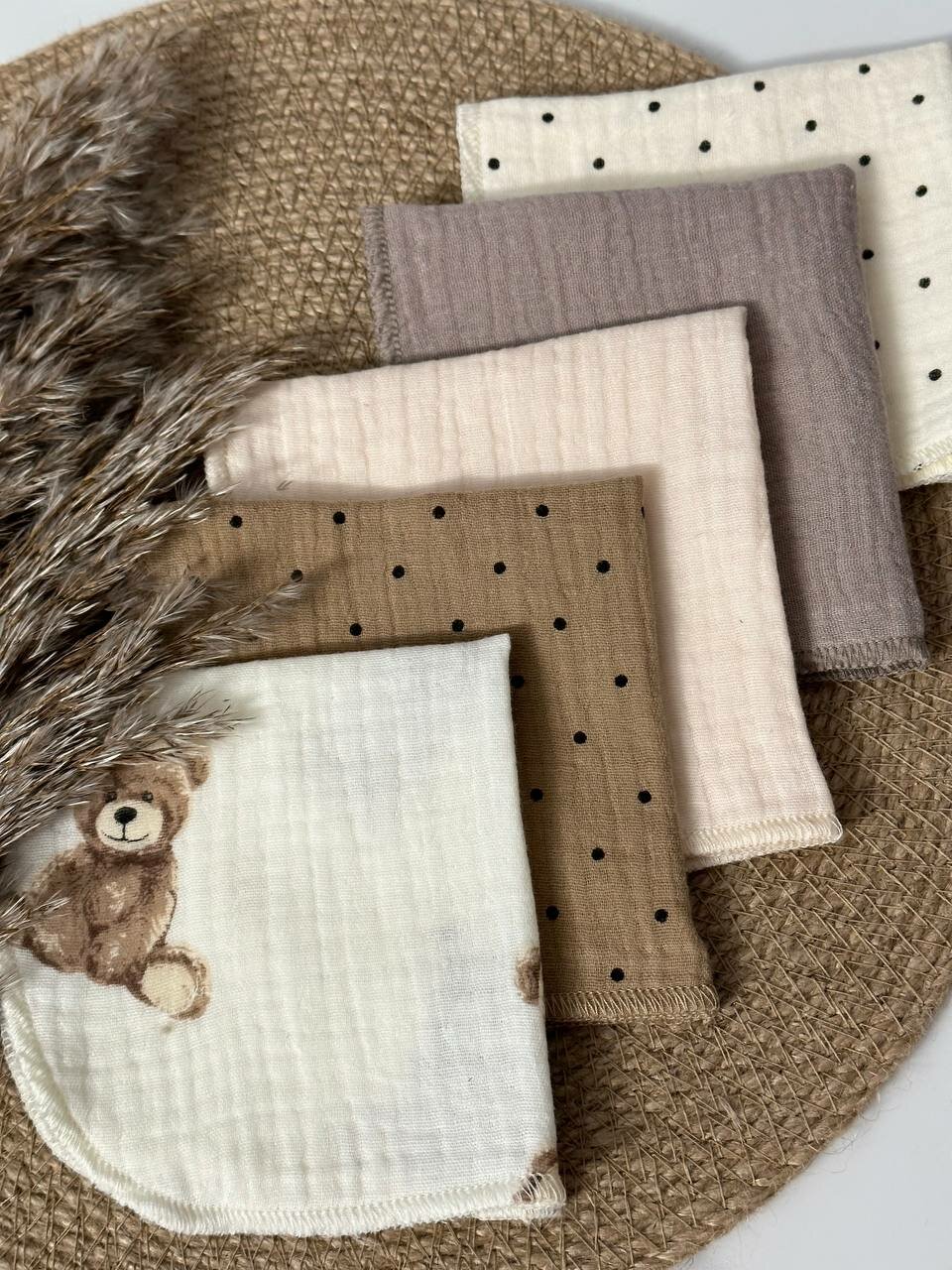 Салфетки детские для кормления муслиновые слюнявчик Горчичный, бежевый, серый