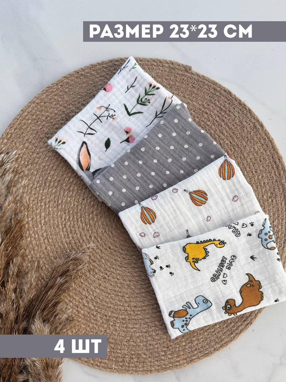 Купить Салфетки детские для кормления муслиновые слюнявчик кролики, горох на сером, шары, дино