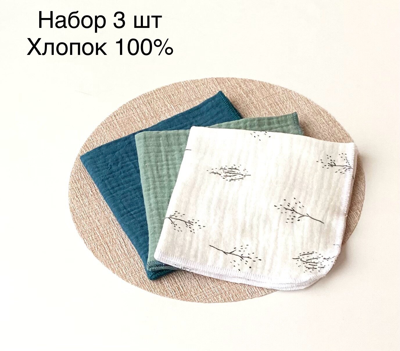 Набор платочков 3 шт Состав:100% хлопок, Цвет: океан эвкалипт веточки интересное: