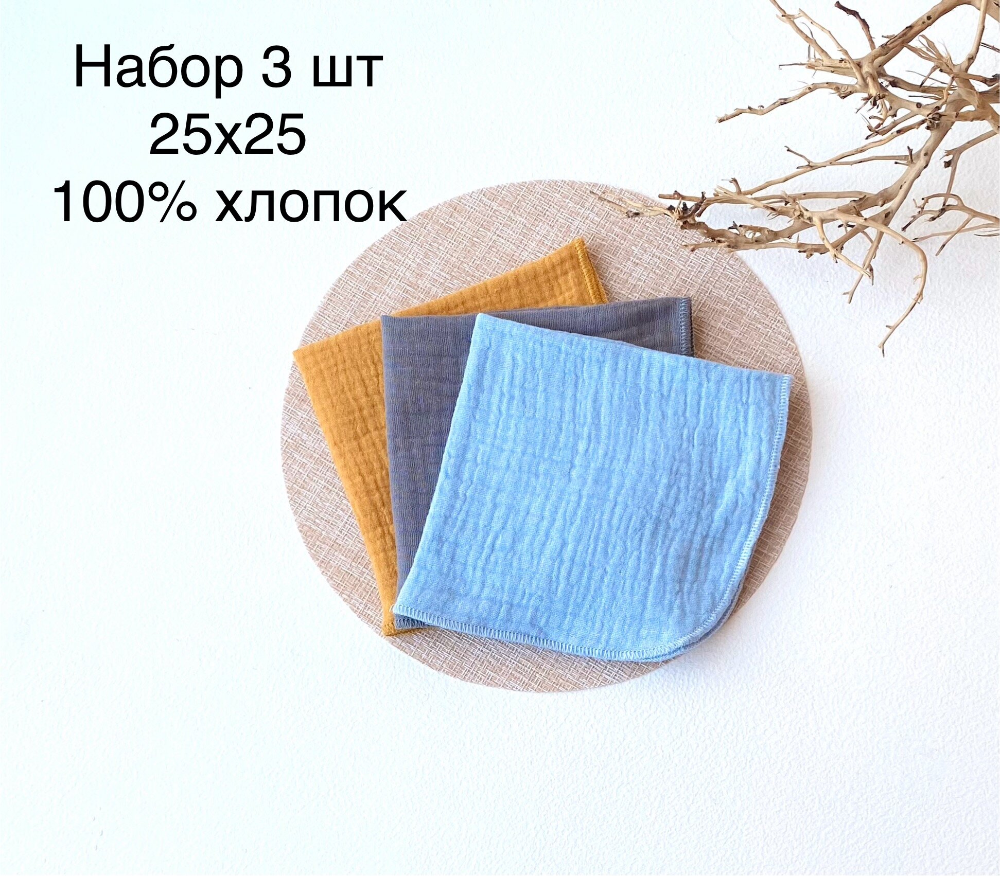 Набор платочков 3 шт Состав:100% хлопок, Цвет: горчичный, темно-серый, голубой интересное:
