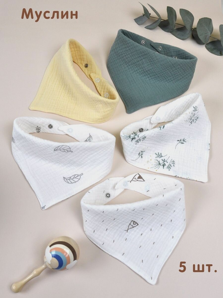 Купить Комплект детских слюнявчиков из муслина уголком Bebo, для кормления новорожденных, one size, набор из 5 шт