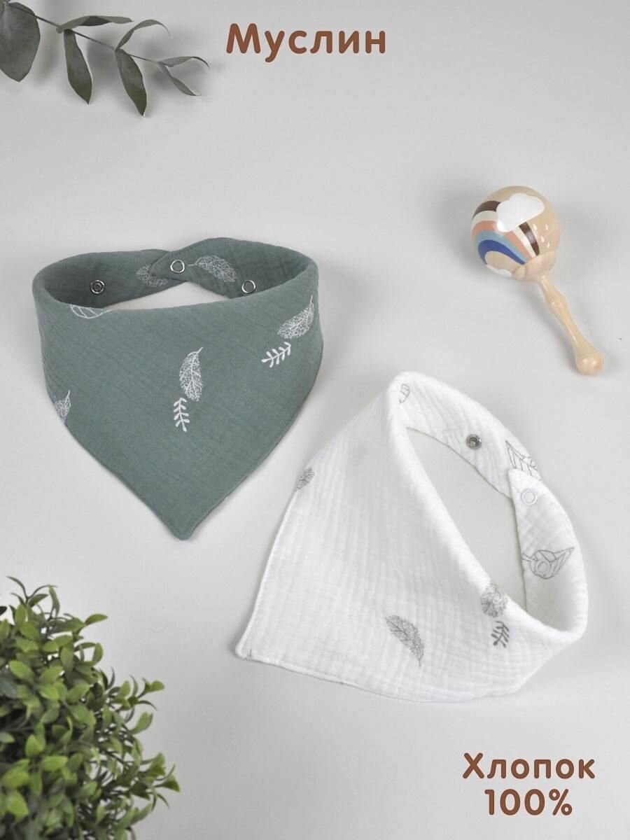Комплект детских слюнявчиков из муслина уголком Bebo, для кормления новорожденных, one size, набор из 2 шт интересное: