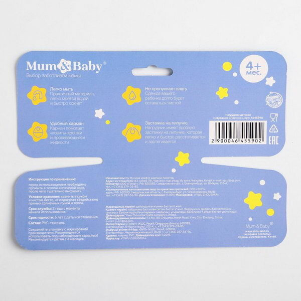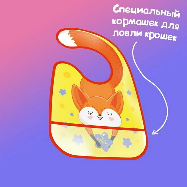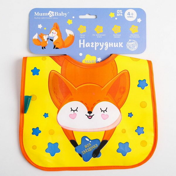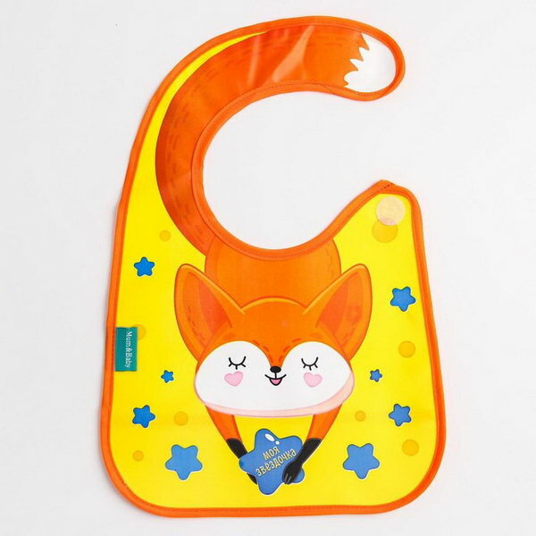 Нагрудник для кормления M&B "Лисенок" непромокаемый на липучке, с карманом интересное: