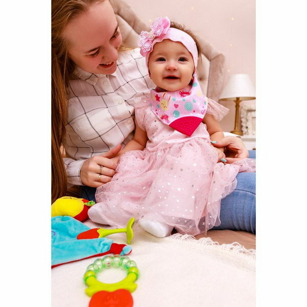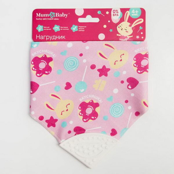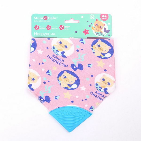 Нагрудник-бандана/слюнявчик для кормления M&B "Крутышка" непромокаемый с прорезывателем, на кнопке интересное: