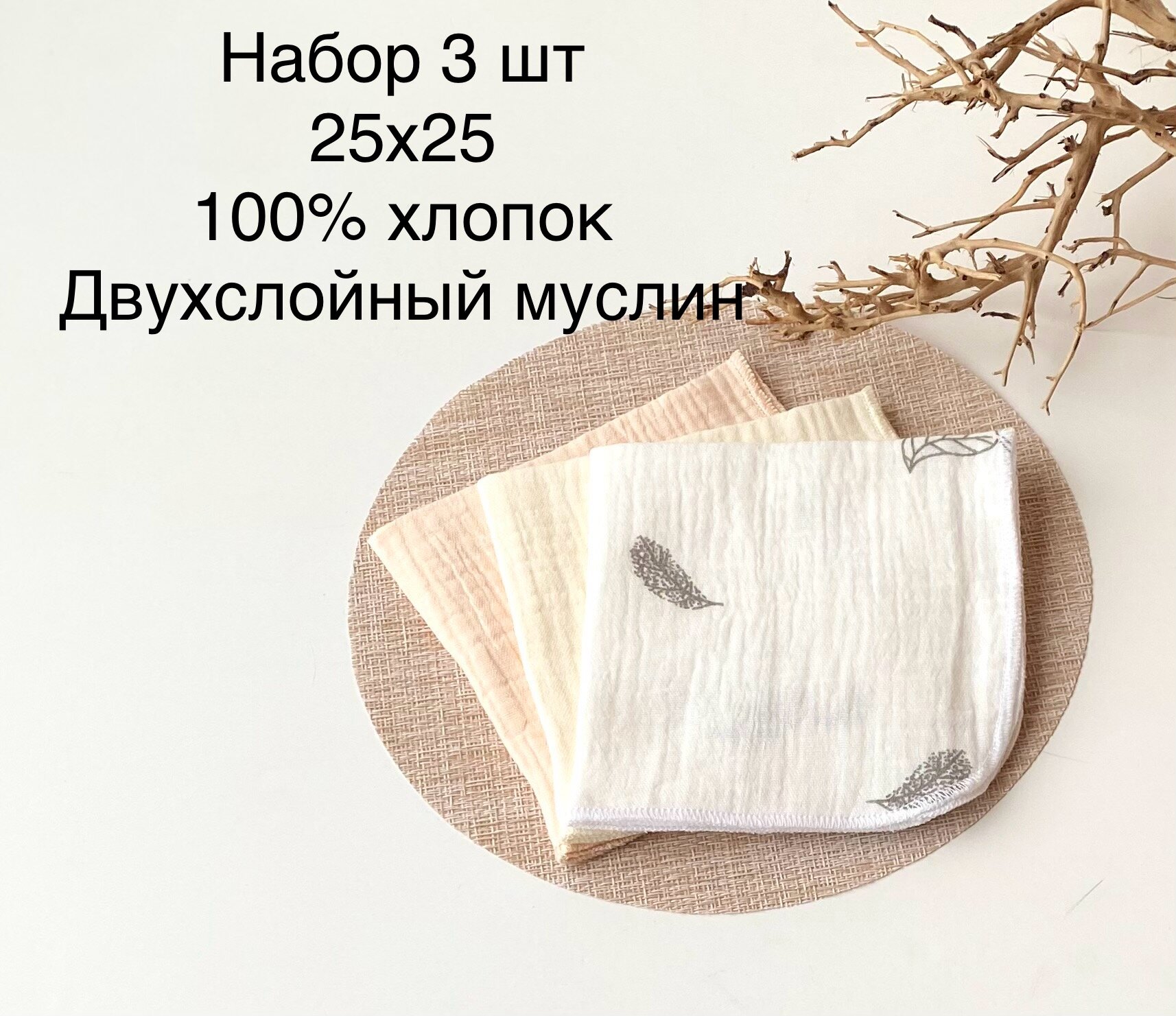 Набор платочков 3 шт Состав:100% хлопок, Цвет: персиковый, айвори, листик интересное: