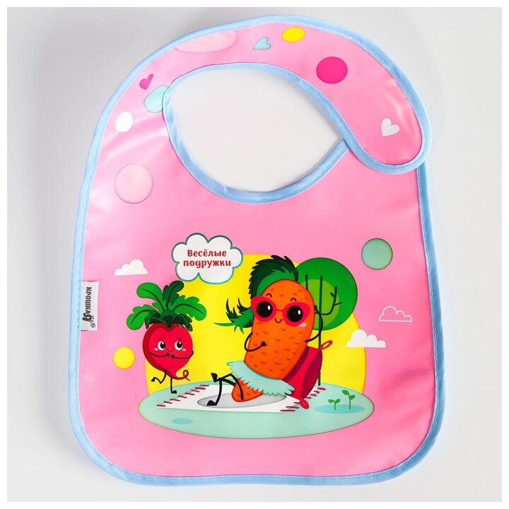 Купить Нагрудник для кормления "Веселые подружки" непромокаемый на липучке, с карманом