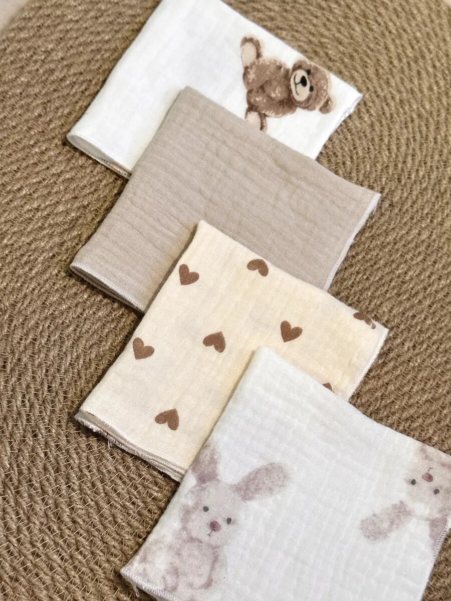 Муслиновые платочки, салфетки для кормления, мишки коричневый