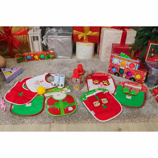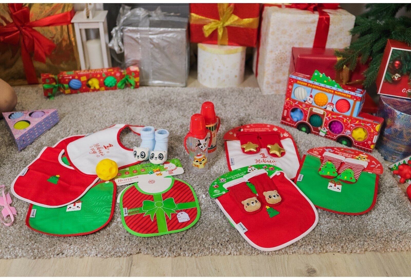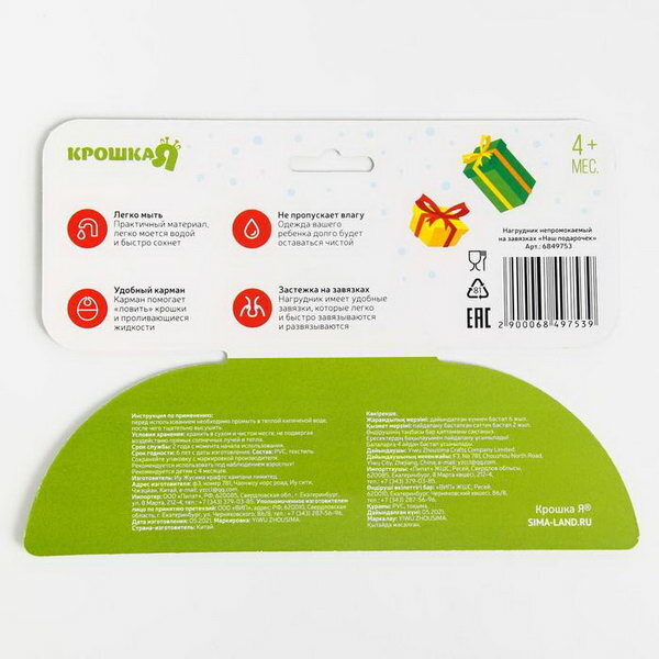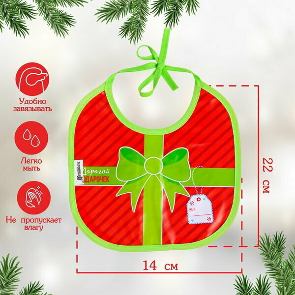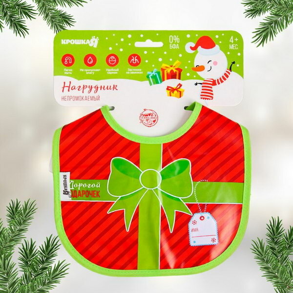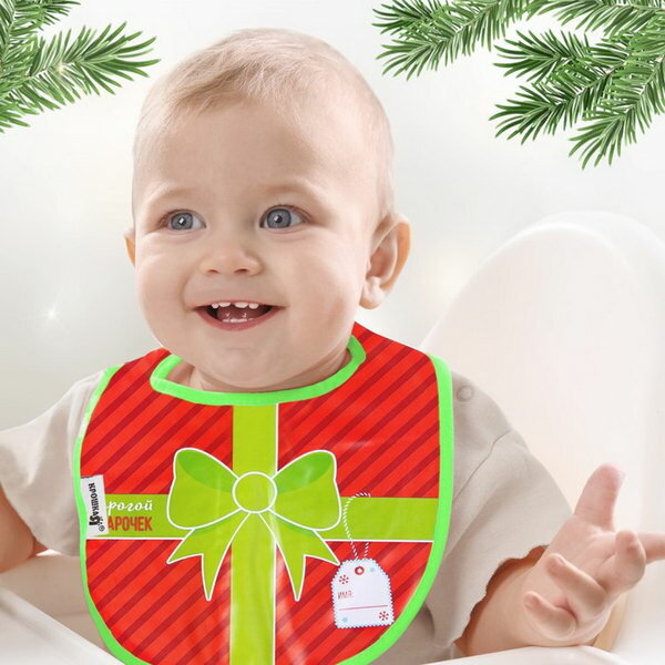 Нагрудник "Наш подарочек" непромокаемый на завязках, ПВХ, новогодняя подарочная упаковка интересное:
