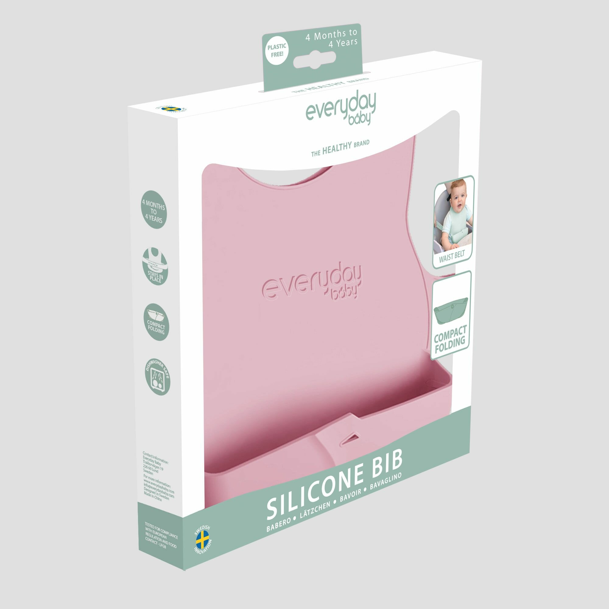 Купить Слюнявчик детский, нагрудник для кормления силиконовый с карманом EveryDay Baby, розовый