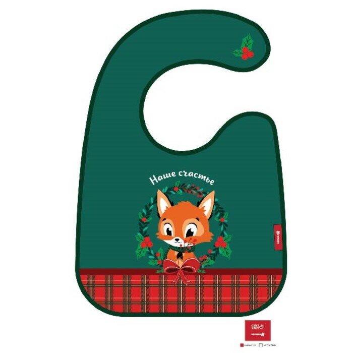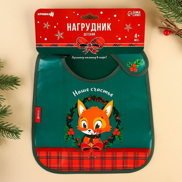 Нагрудник для кормления новогодний "Наше счастье, красная клетка", непромокаемый на липучке, с карманом, зеленый интересное: