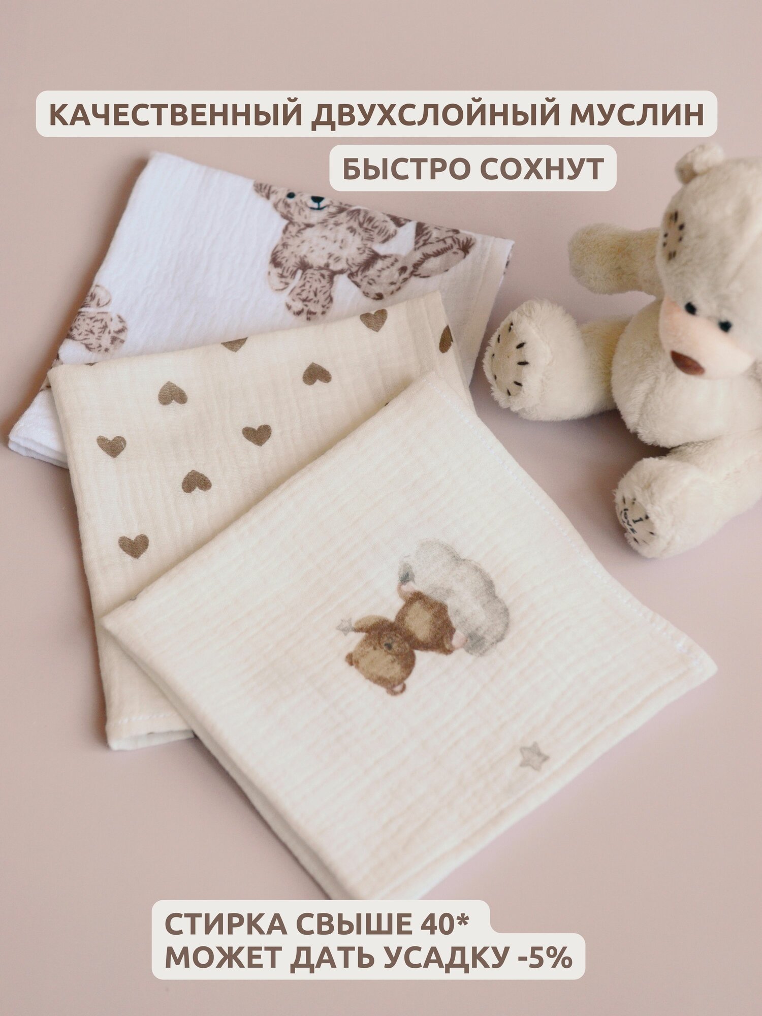 Муслиновые салфетки-платочки для кормления 30*30 см, слюнявчик для новорожденных, 100%-хлопок, набор 3 шт. интересное: