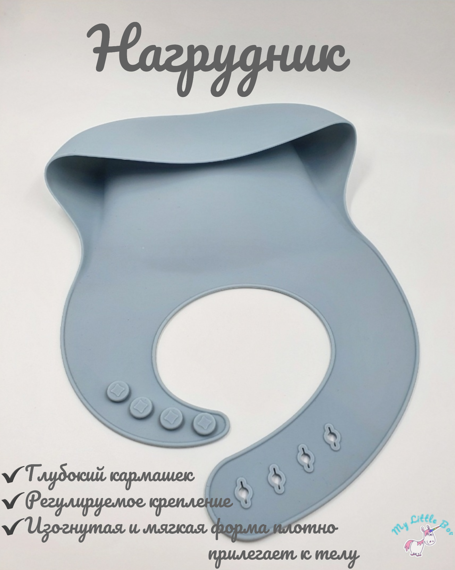 Нагрудник силиконовый для малышей, серо-голубой, My Little Boo интересное: