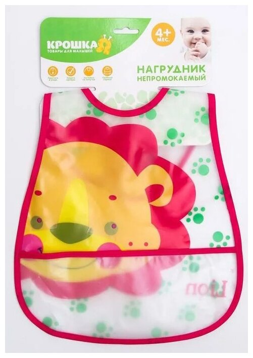 Нагрудник непромокаемый из клеёнки с карманом «Львёнок», на липучке, 1184492 интересное: