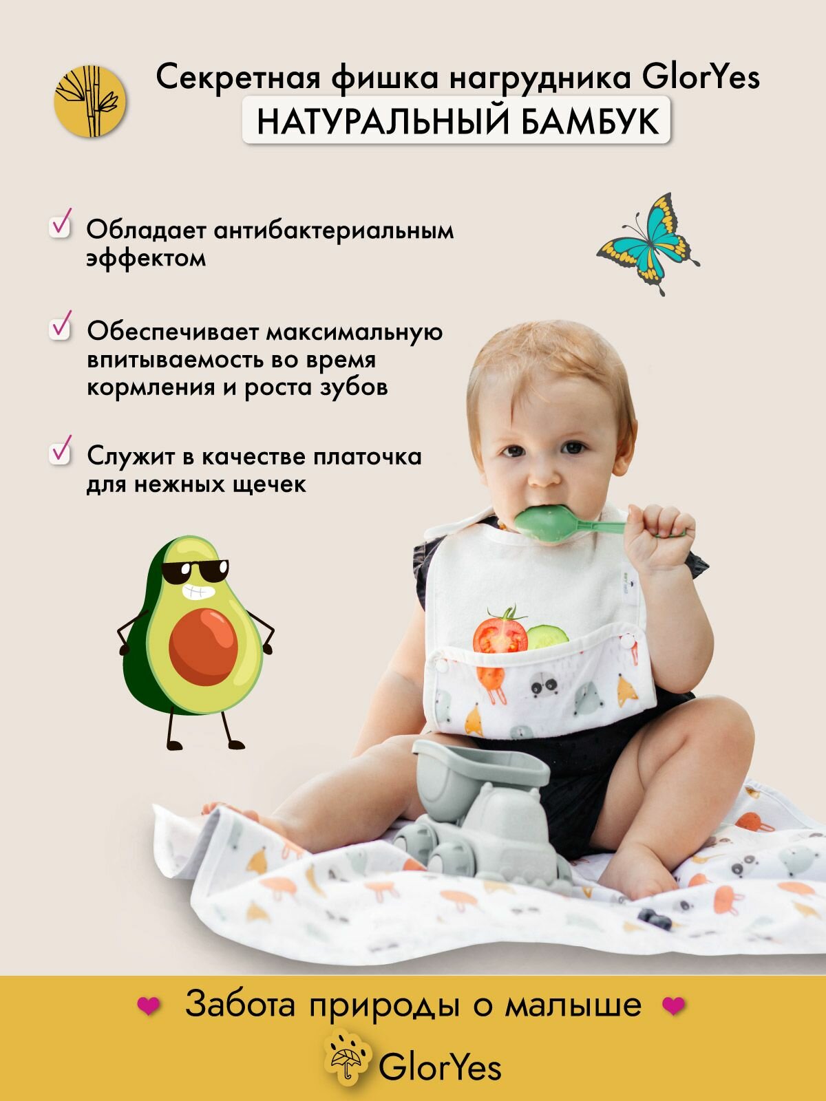 Нагрудник GlorYes! бамбуковый двусторонний с карманом Весенний