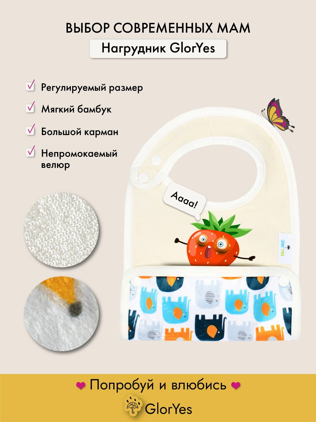 Нагрудник GlorYes! двусторонний с карманом Добрые слонята