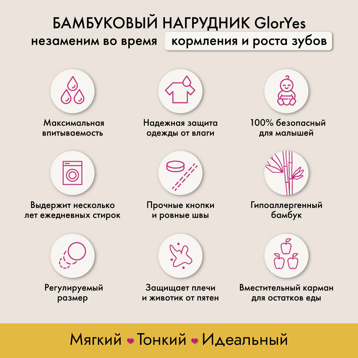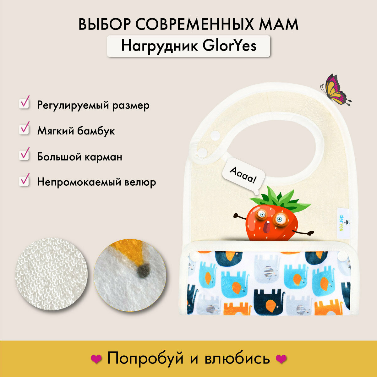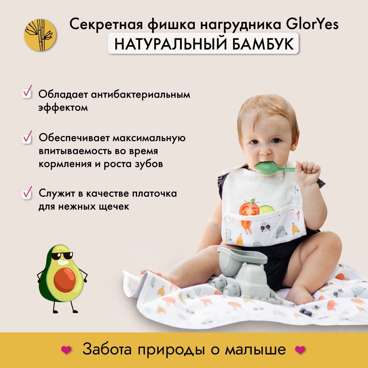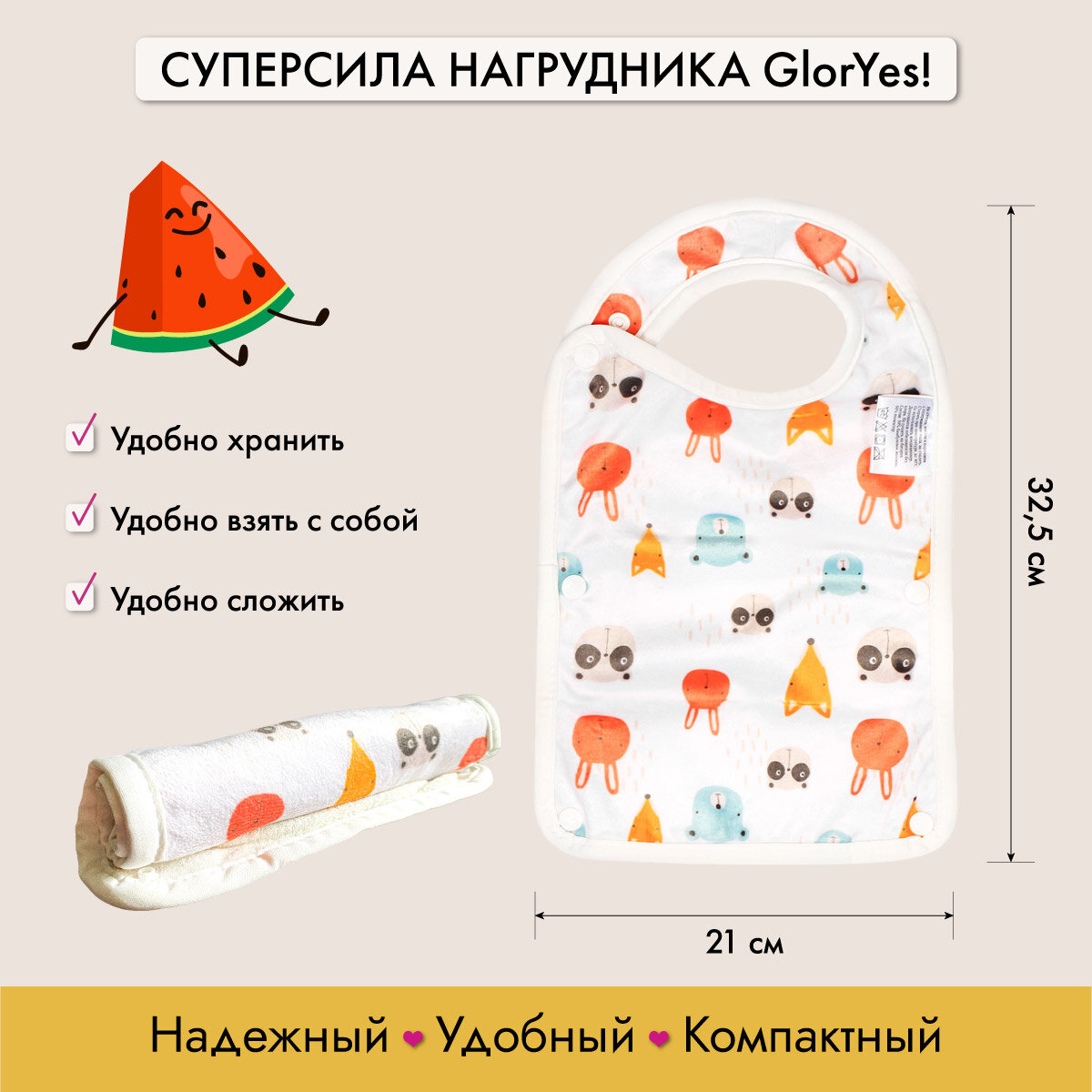 СохранитьНагрудник GlorYes! бамбуковый двусторонний с карманом Ананасы интересное:
